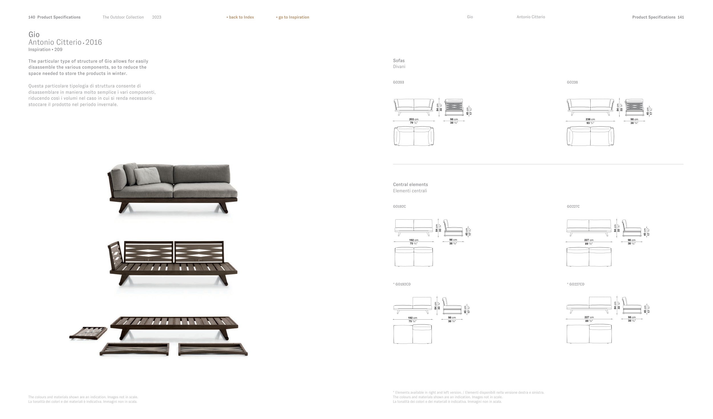 * Elements available in right and left version. / Elementi disponibili nella versione destra e sinistra.