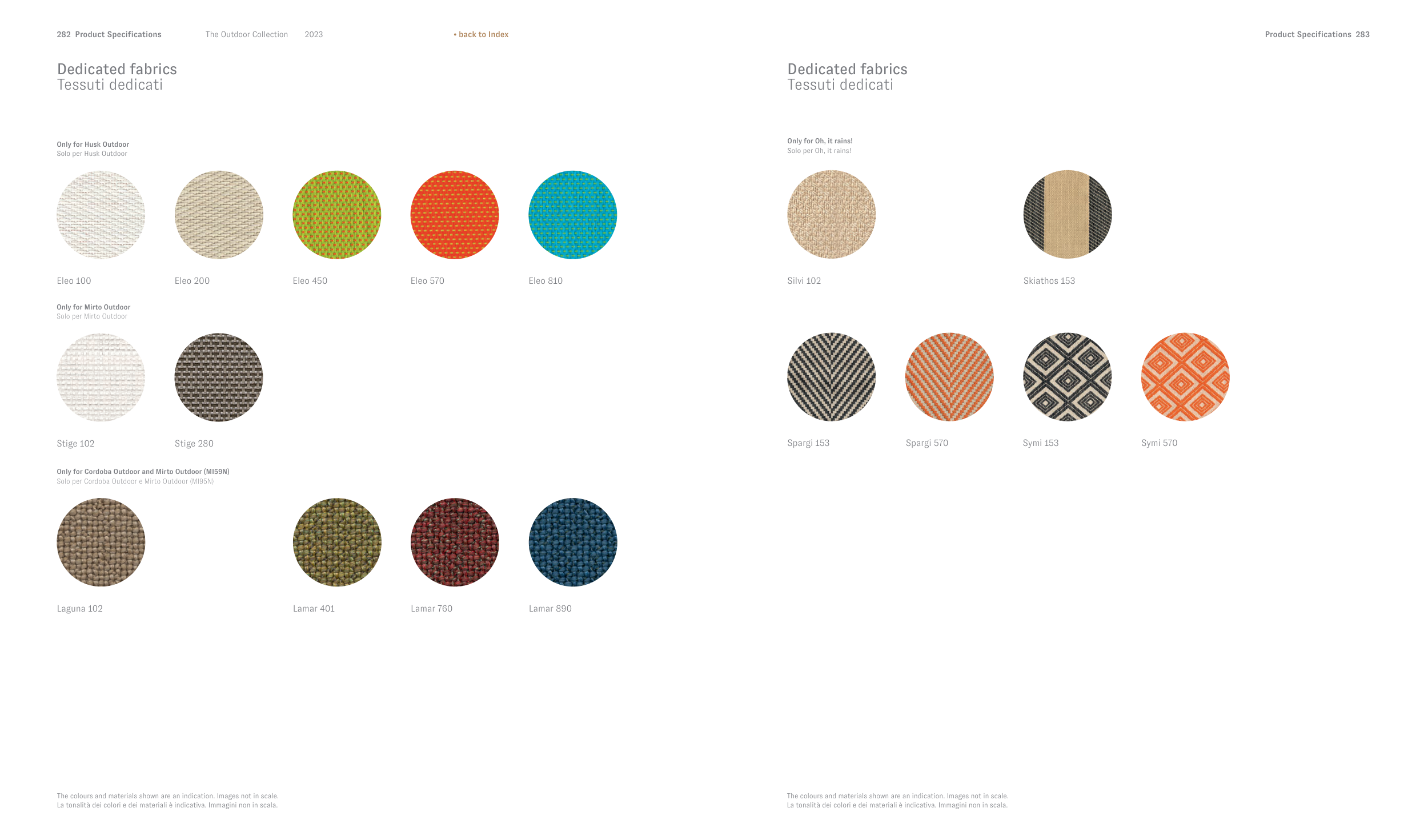 The colours and materials shown are an indication. Images not in scale.