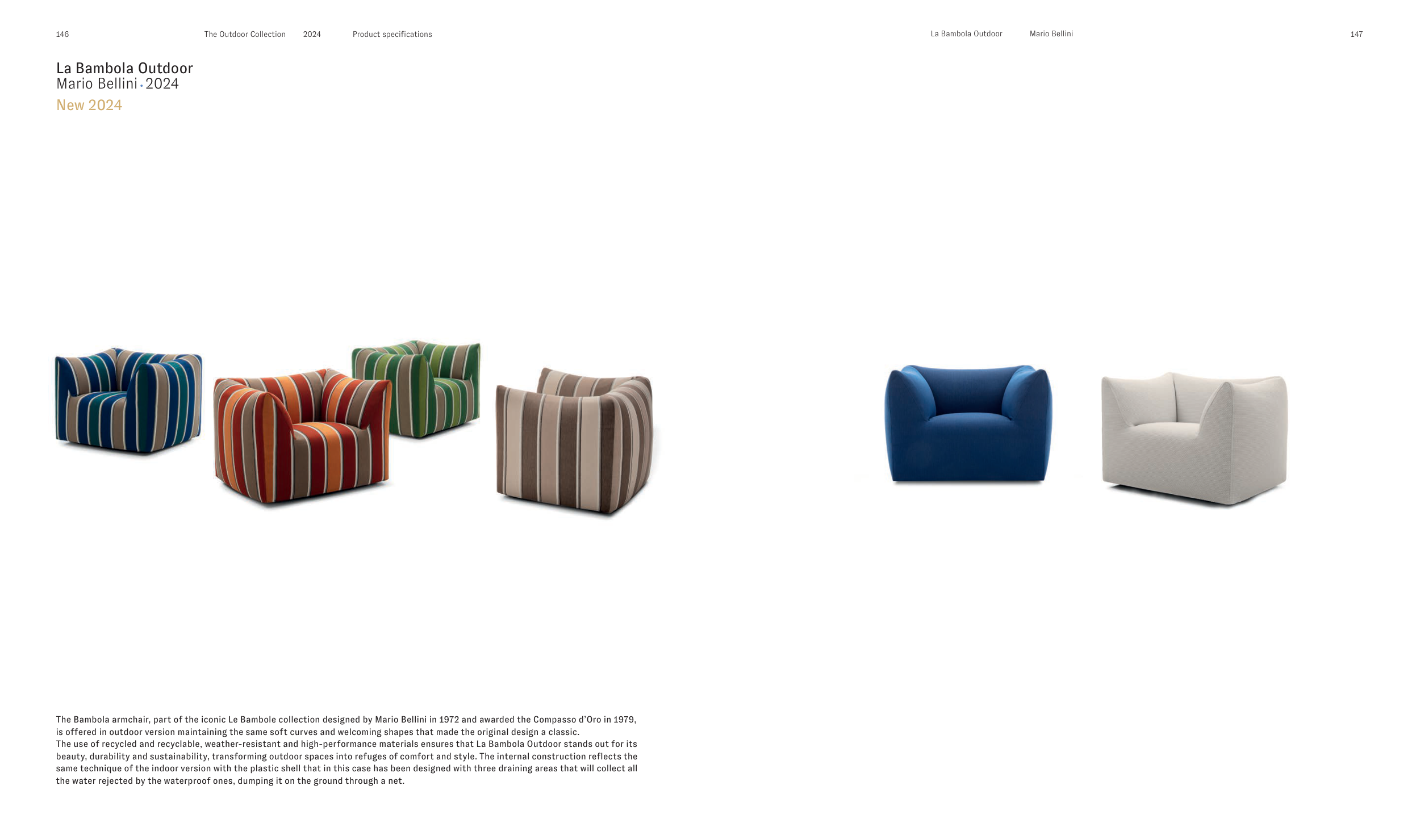 The use of recycled and recyclable, weather-resistant and high-performance materials ensures that La Bambola Outdoor stands out for its