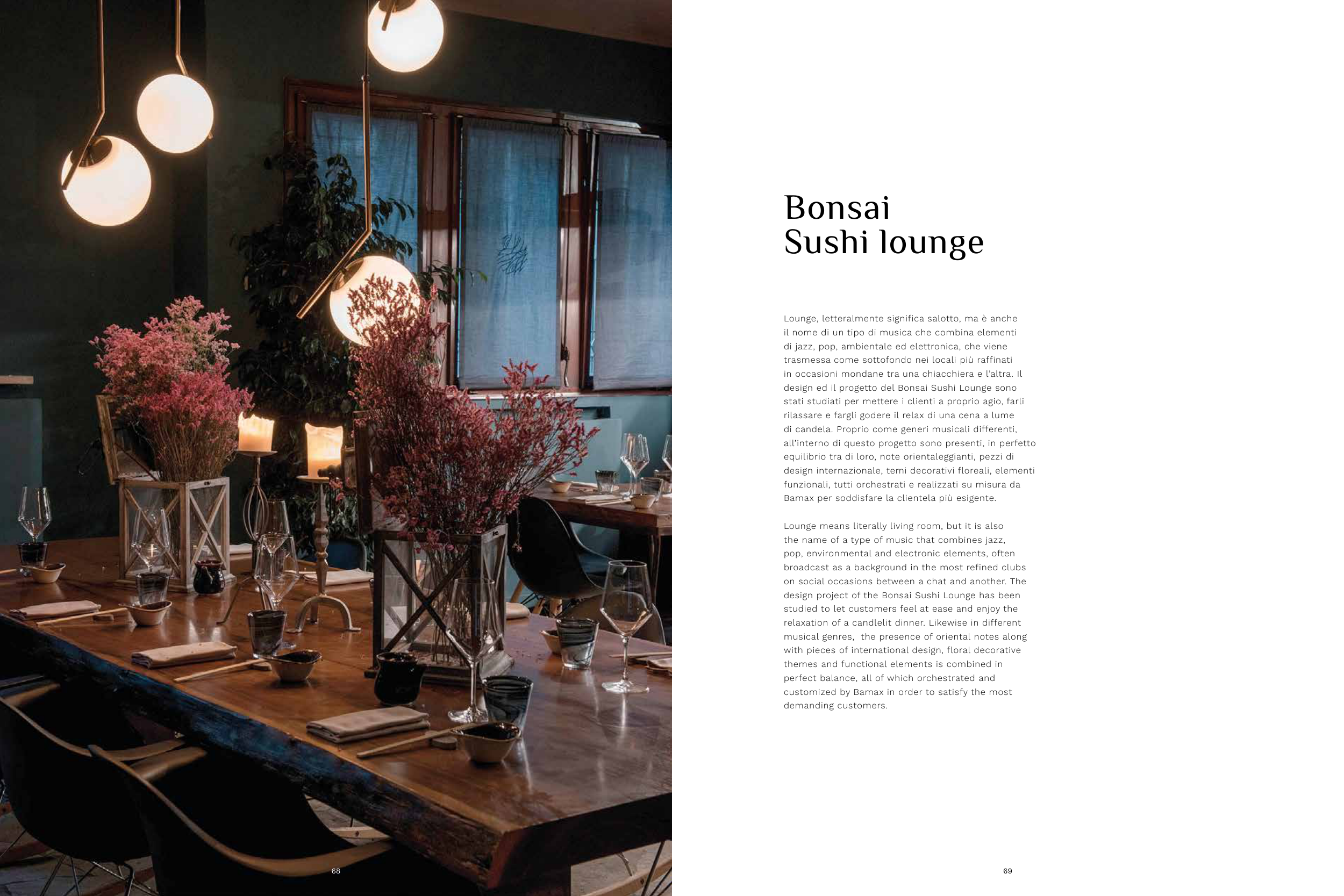design ed il progetto del Bonsai Sushi Lounge sono