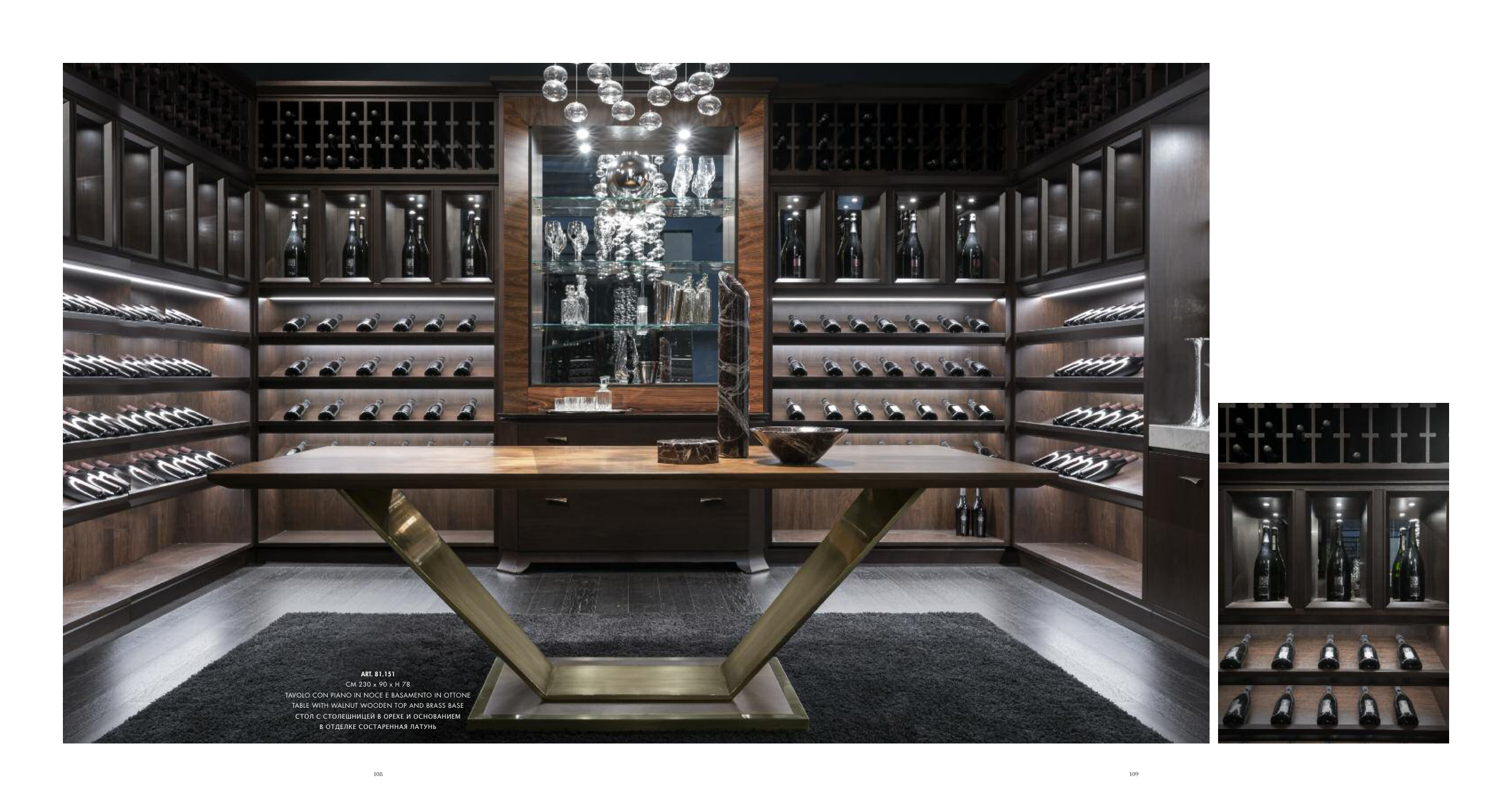 TAVOLO CON PIANO IN NOCE E BASAMENTO IN OTTONE