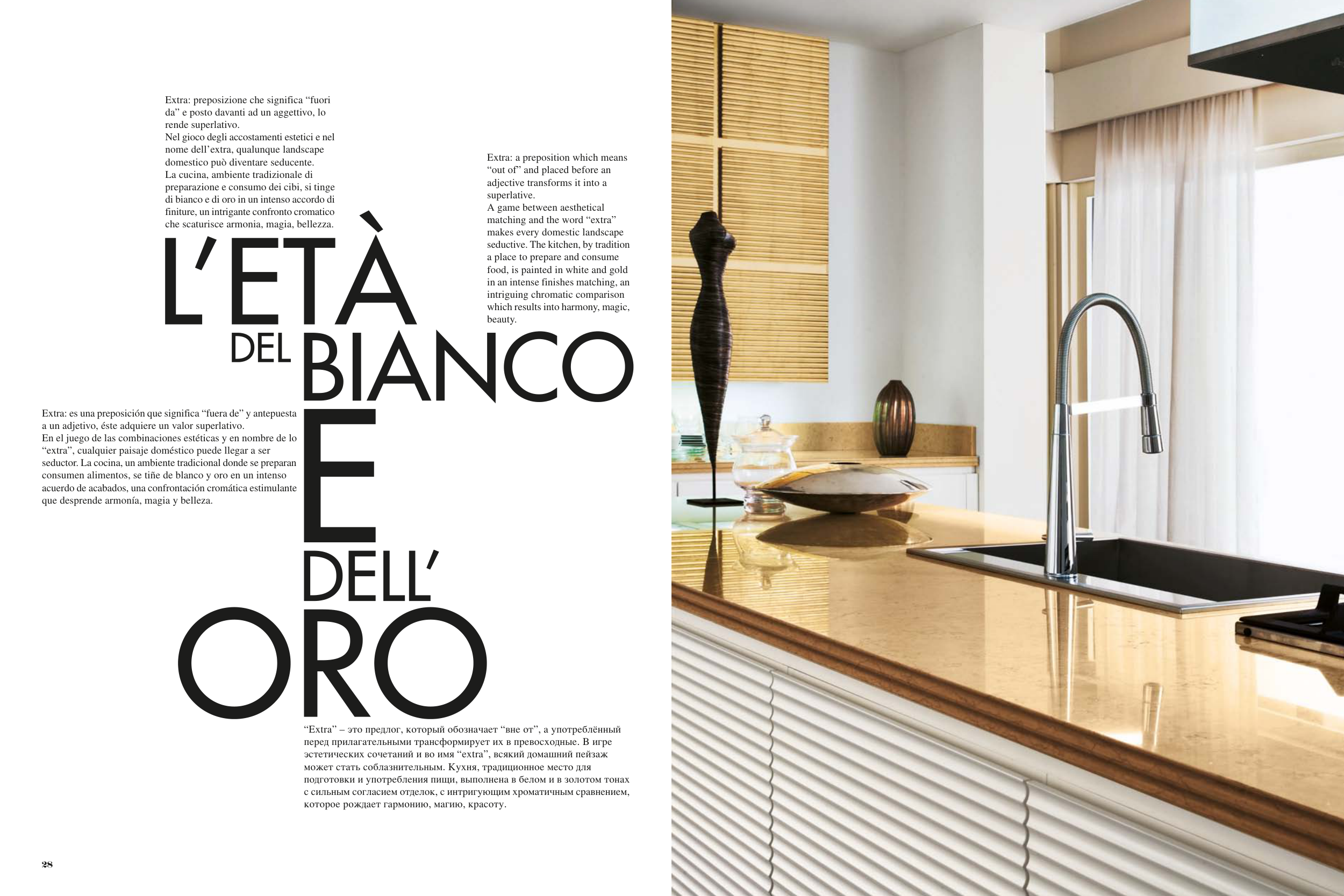 подготовки и употребления пищи, выполнена в белом и в золотом тонах