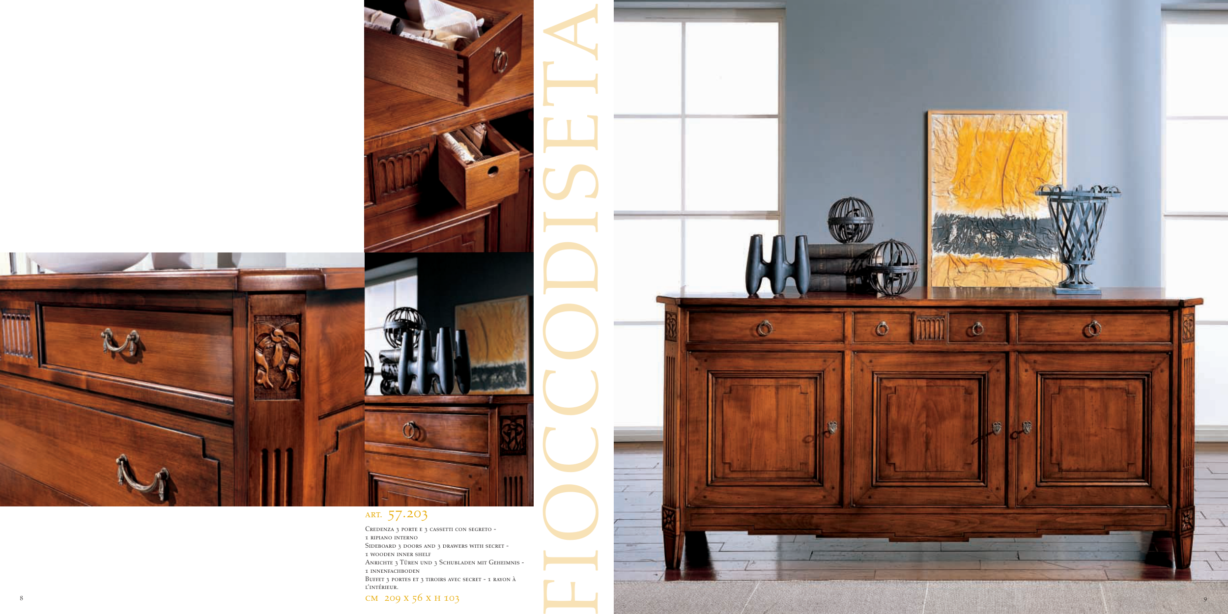 Credenza 3 porte e 3 cassetti con segreto -