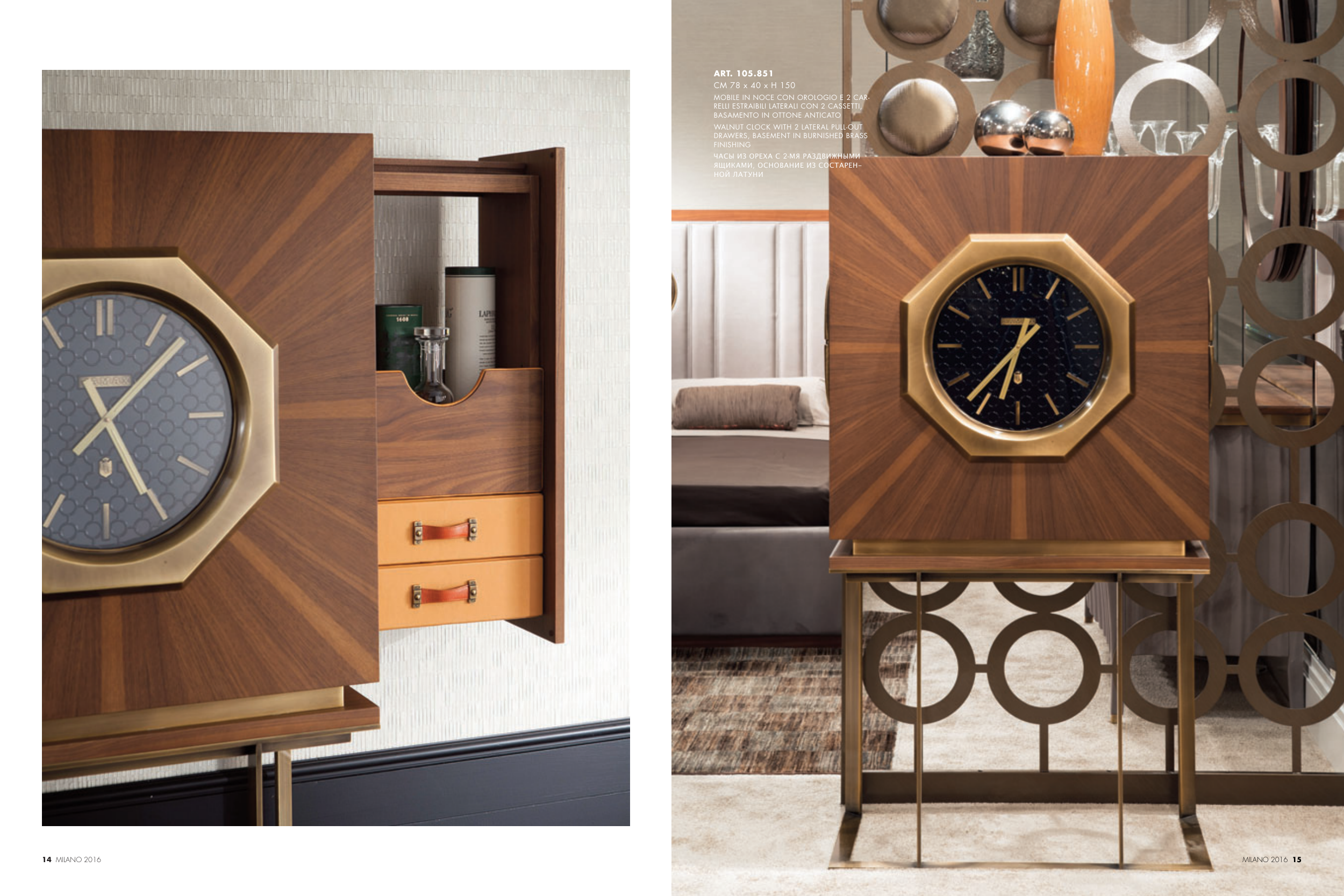 WALNUT CLOCK WITH 2 LATERAL PULL-OUT