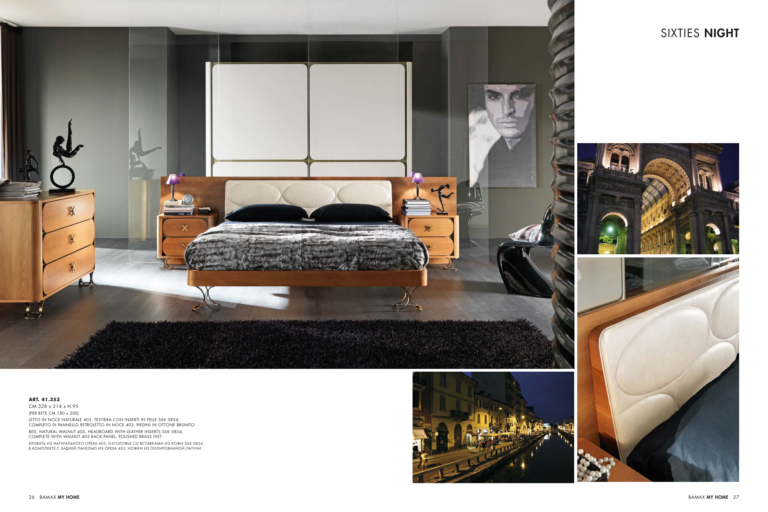КРОВАТЬ ИЗ НАТУРАЛЬНОГО ОРЕХА 403, ИЗГОЛОВЬЕ СО ВСТАВКАМИ ИЗ КОЖИ SILK 0854,