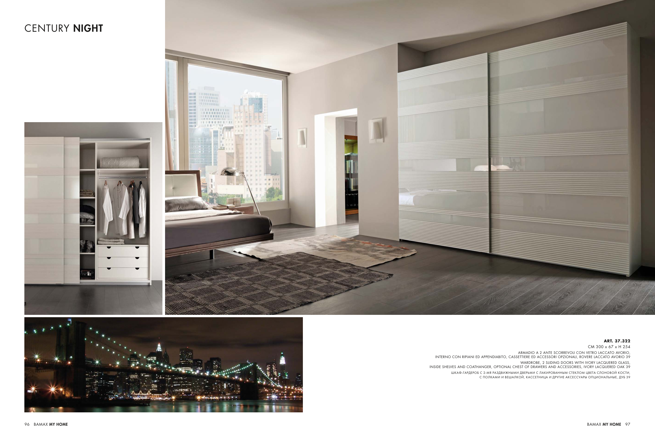 INTERNO CON RIPIANI ED APPENDIABITO, CASSETTIERE ED ACCESSORI OPZIONALI, ROVERE LACCATO AVORIO 39