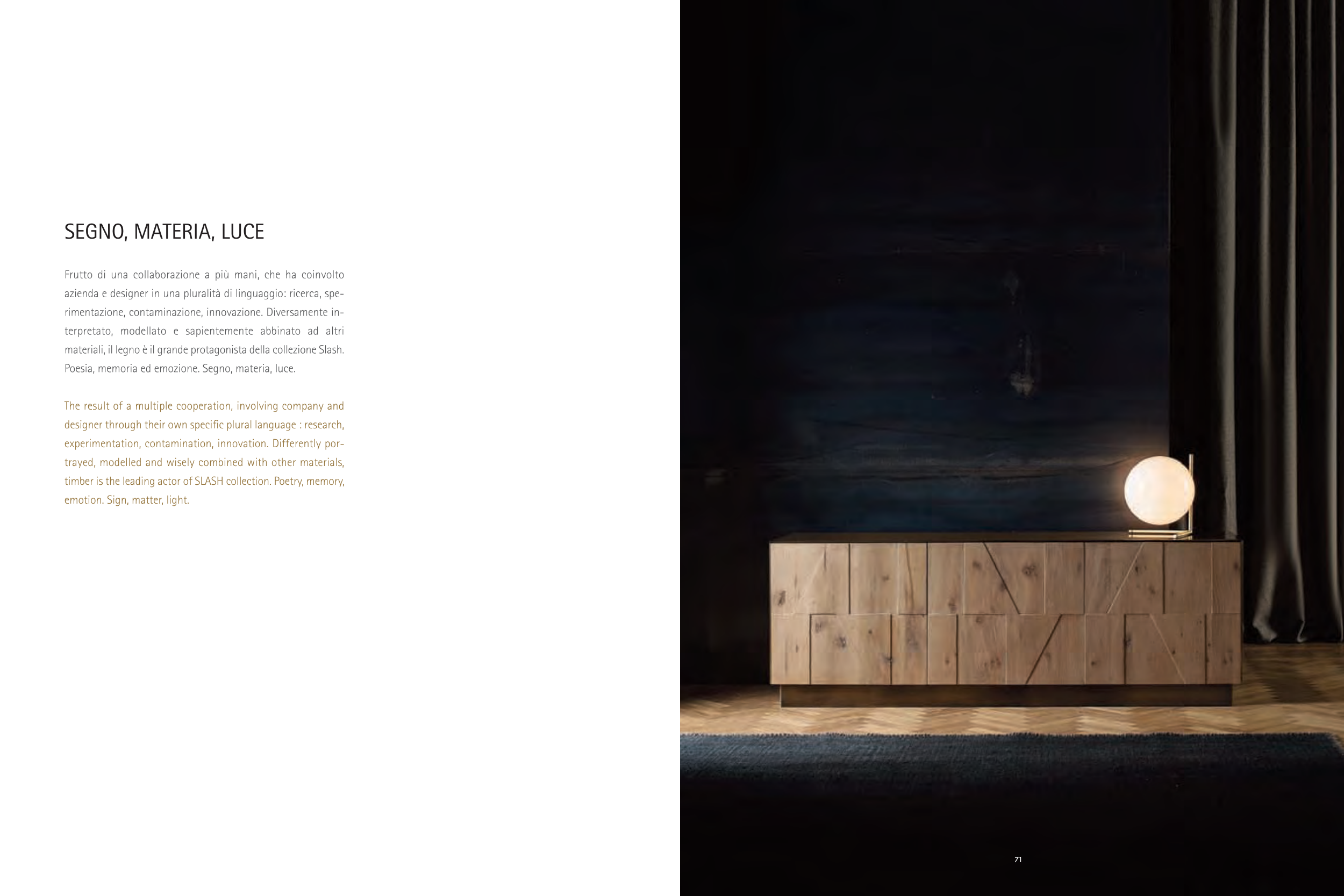 timber is the leading actor of SLASH collection. Poetry, memory,