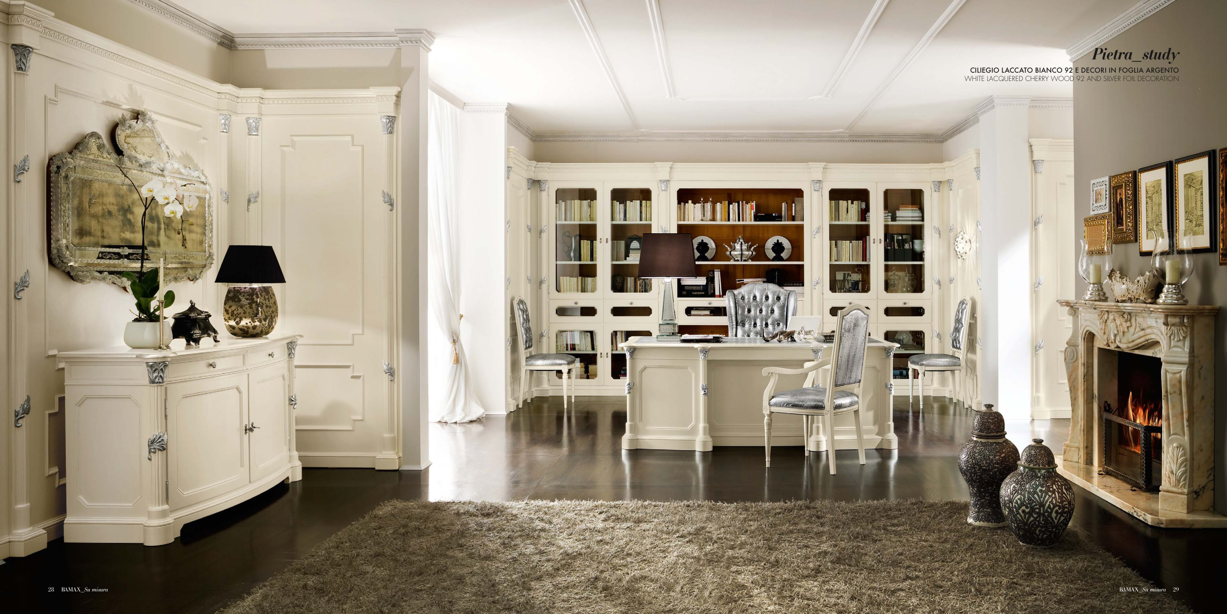 CILIEGIO LACCATO BIANCO 92 E DECORI IN FOGLIA ARGENTO