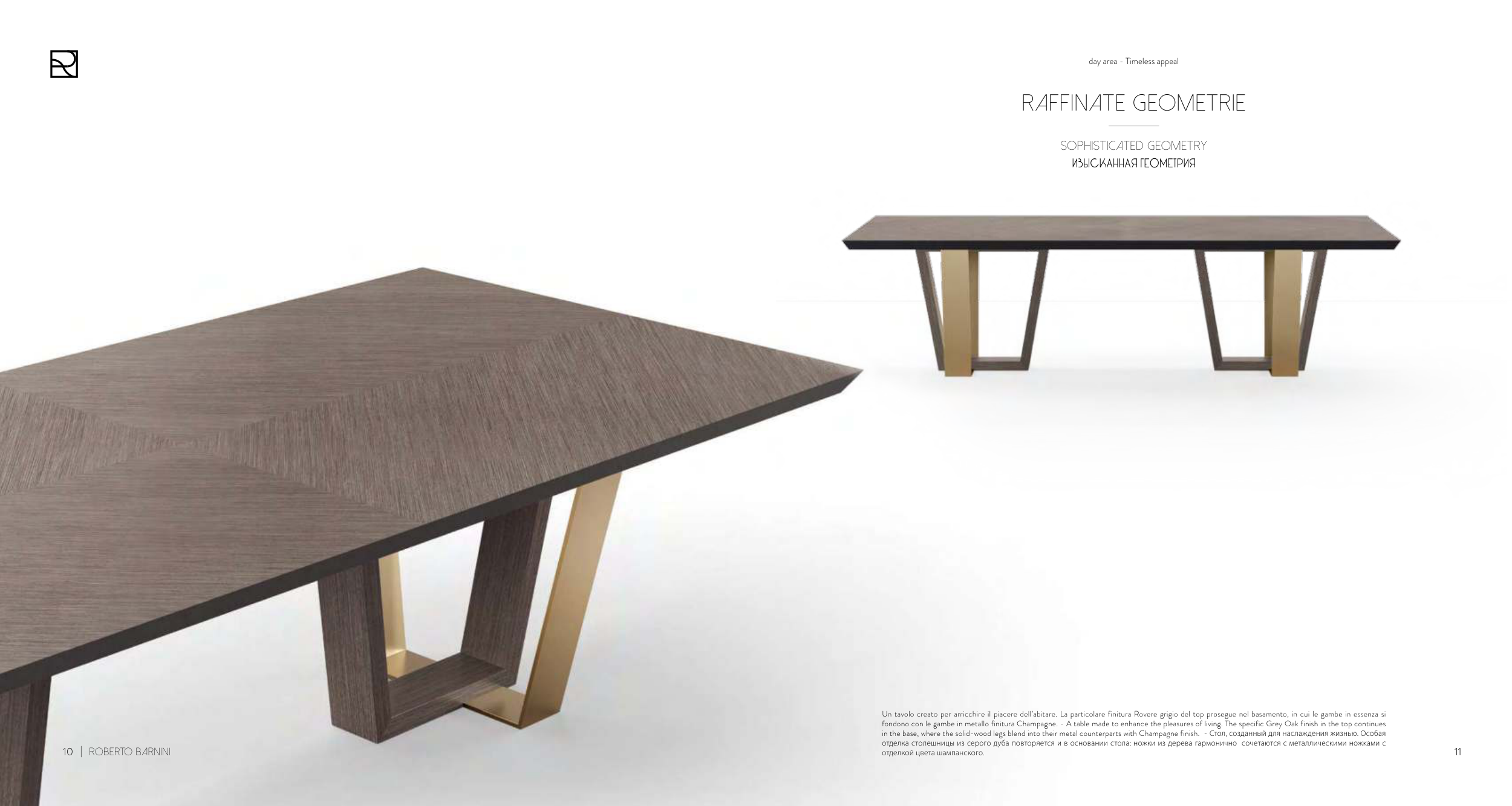 fondono con le gambe in metallo finitura Champagne. - A table made to enhance the pleasures of living. The specific Grey Oak finish in the top continues