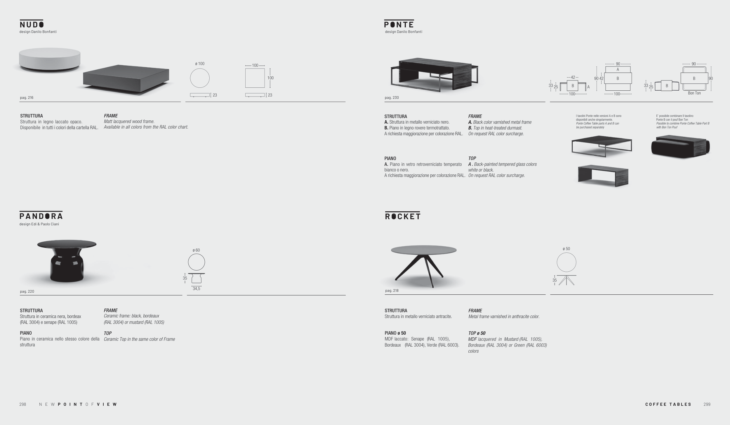 I tavolini Ponte nelle versioni A e B sono