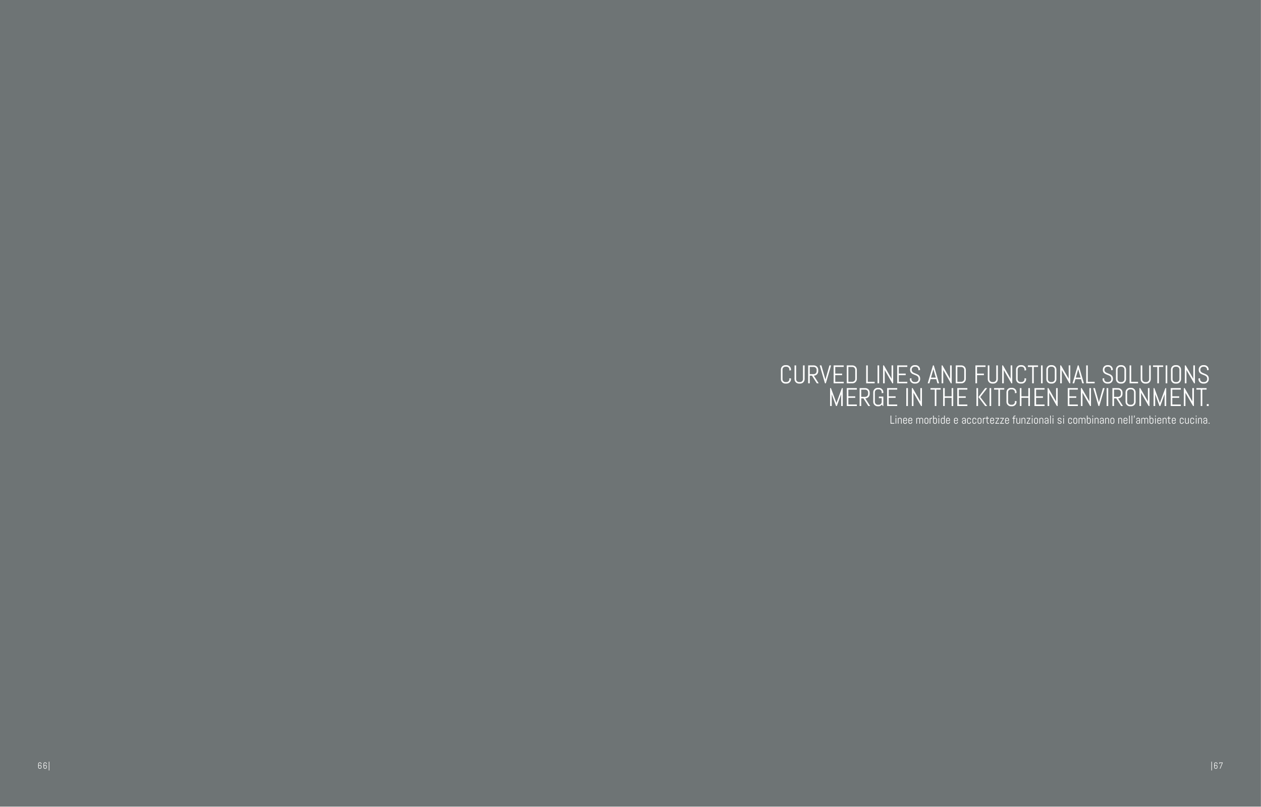 Linee morbide e accortezze funzionali si combinano nell’ambiente cucina.