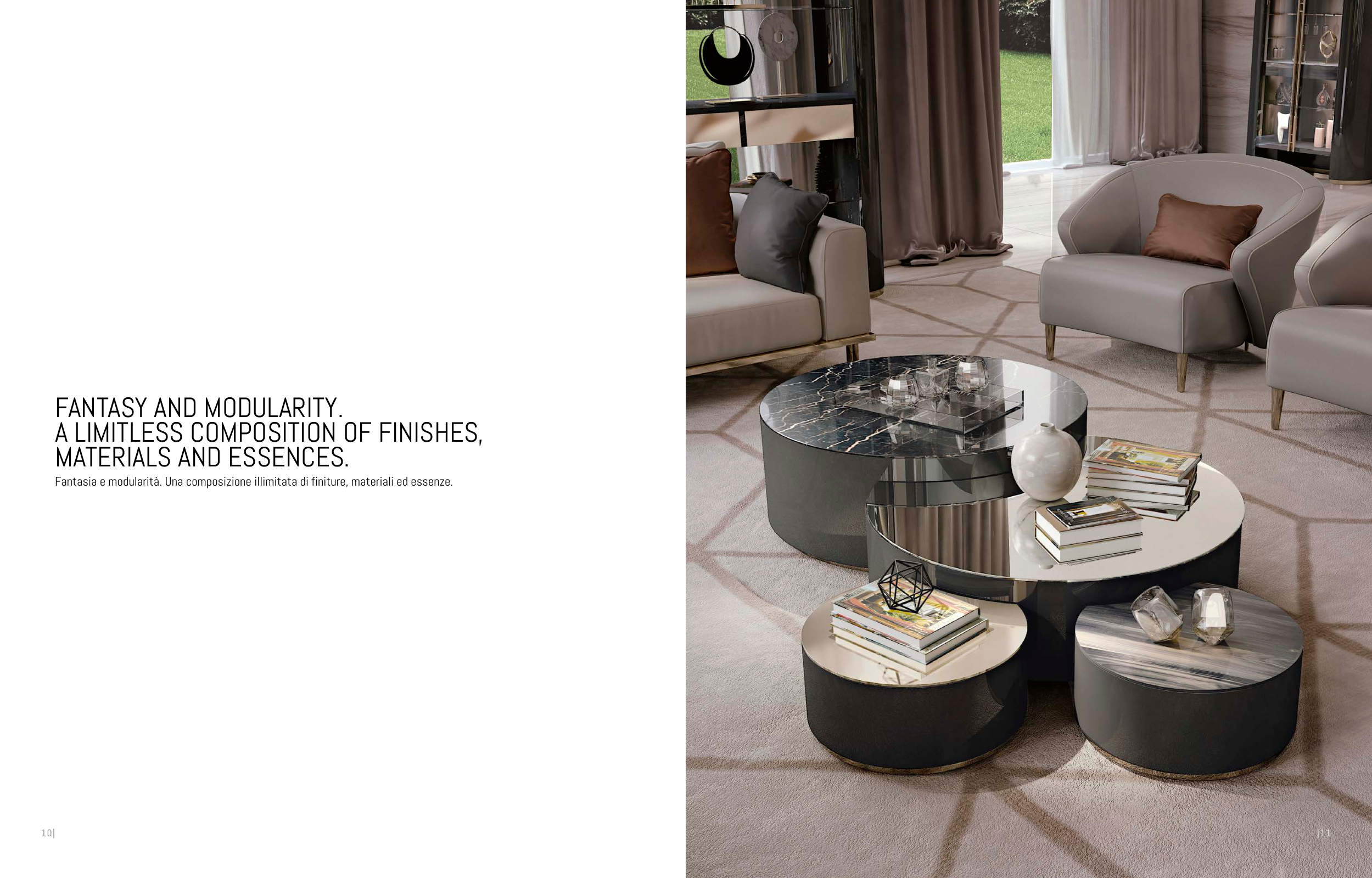 Fantasia e modularità. Una composizione illimitata di finiture, materiali ed essenze.
