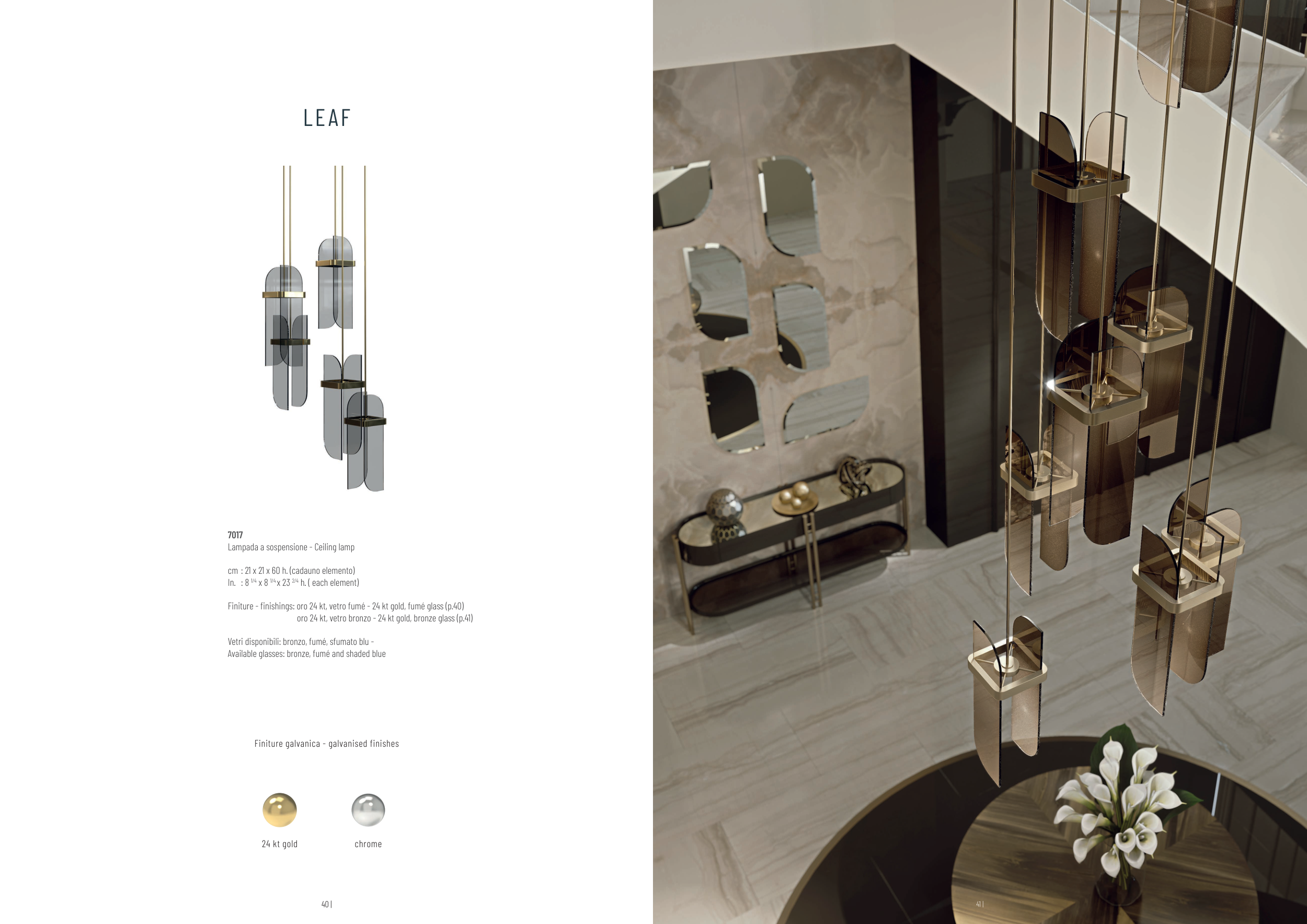 Finiture - finishings: oro 24 kt, vetro fumé - 24 kt gold, fumé glass (p.40)