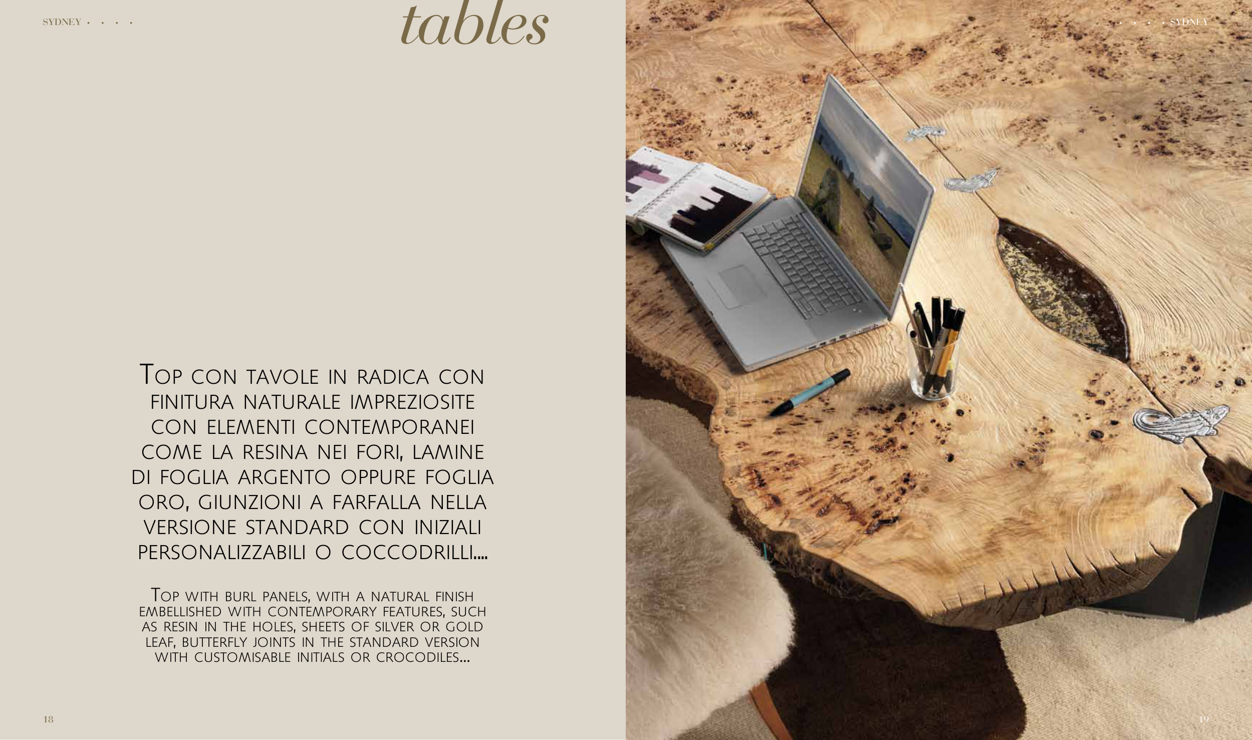 Top wiTh burl panels, wiTh a naTural finish