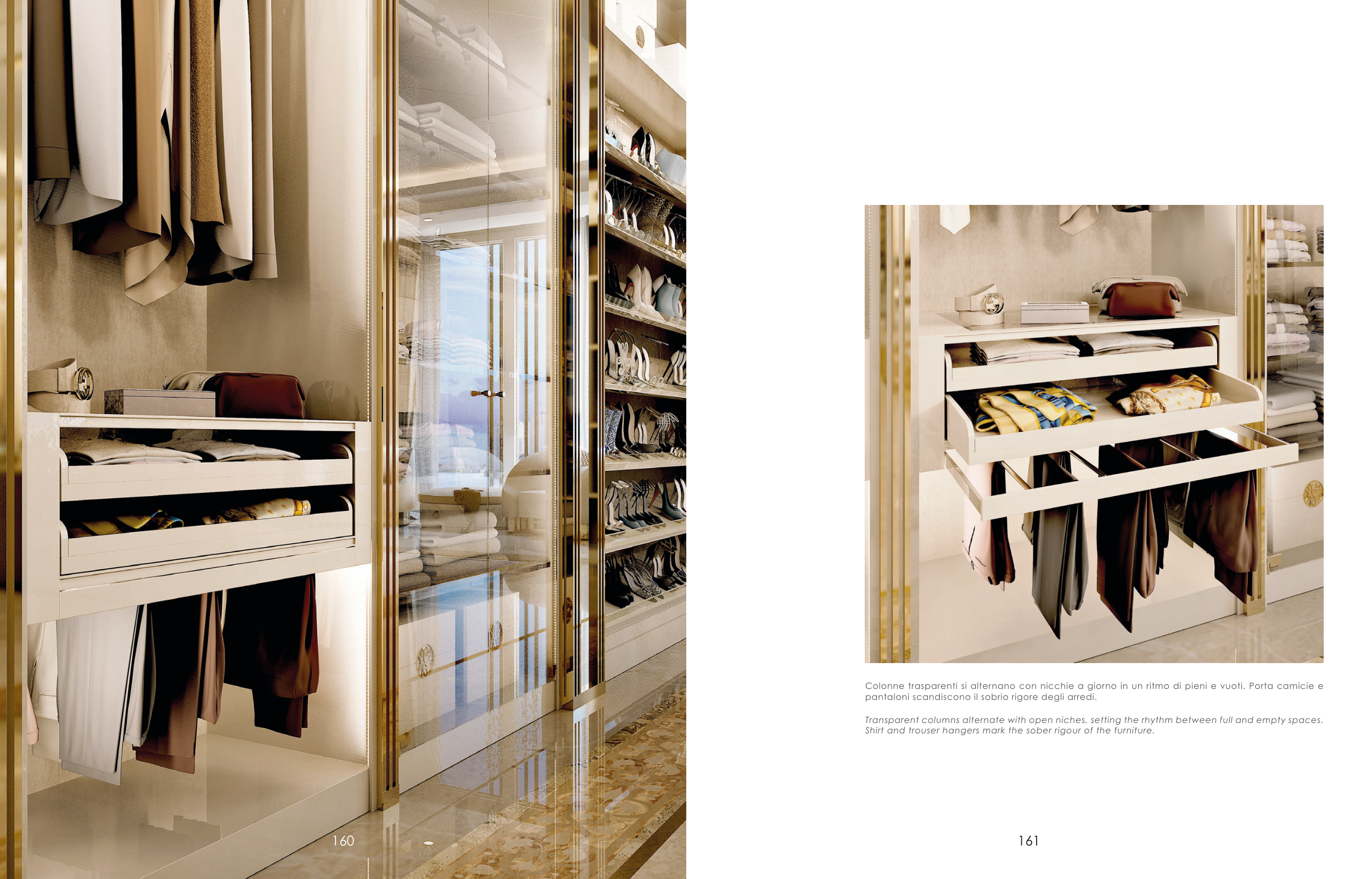 Colonne trasparenti si alternano con nicchie a giorno in un ritmo di pieni e vuoti. Porta camicie e