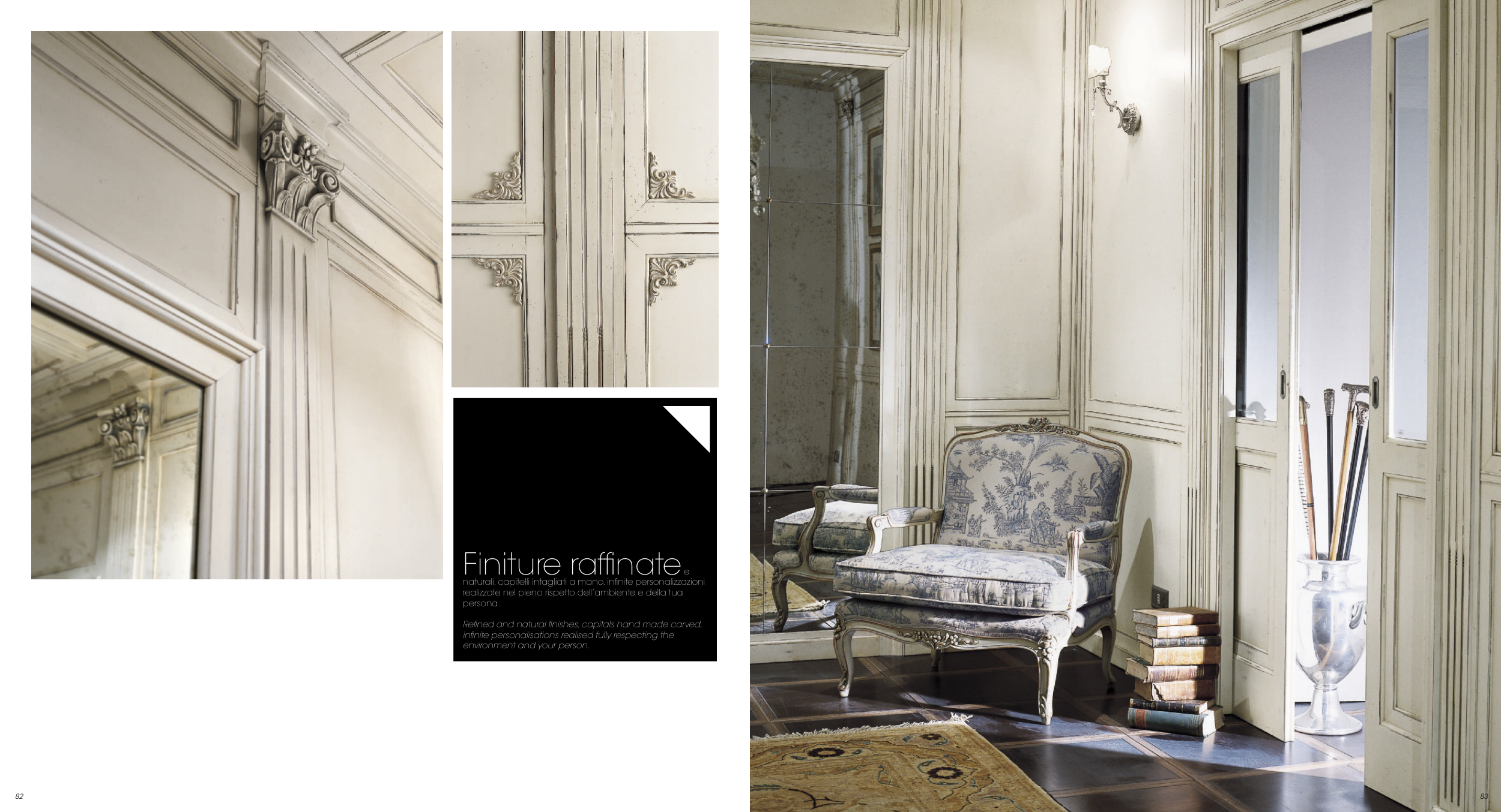 Refined and natural finishes, capitals hand made carved,
