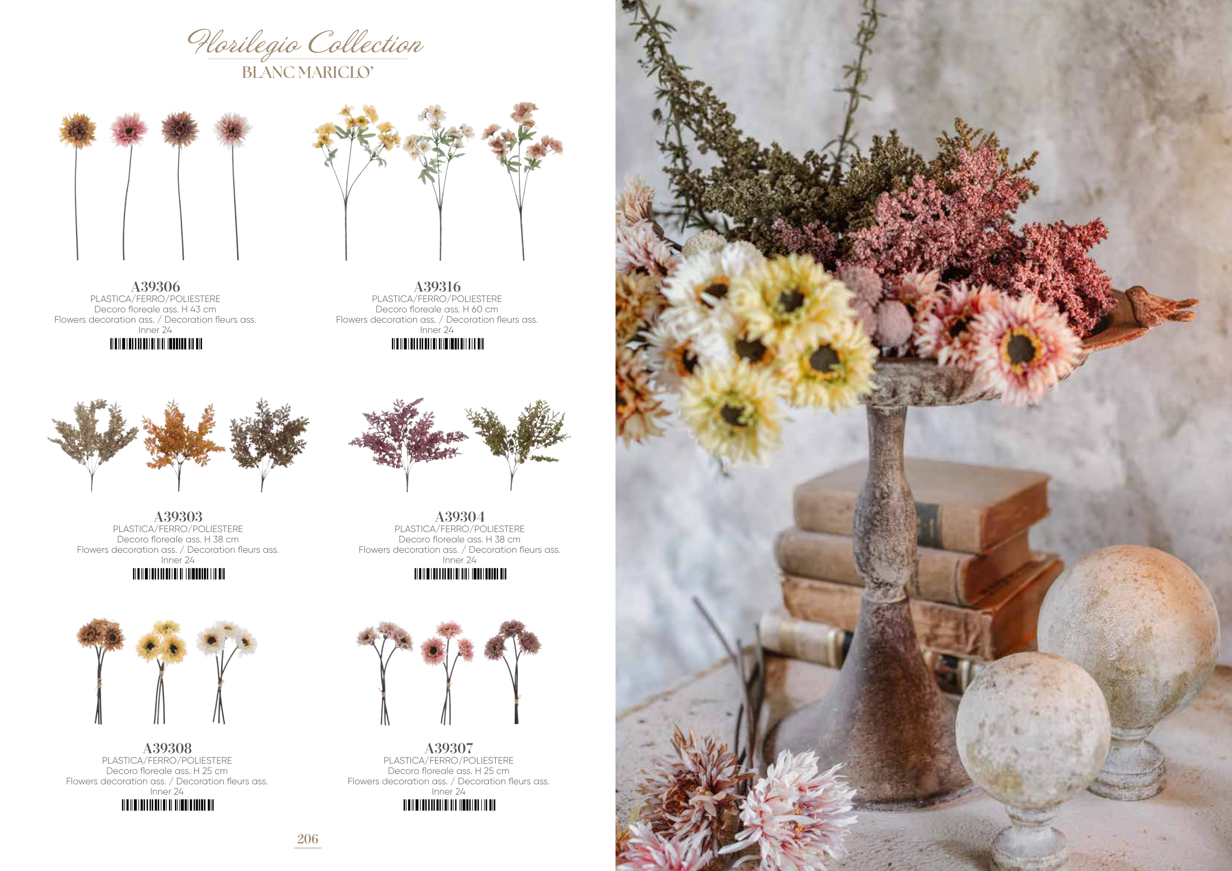 Decoro floreale ass. H 38 cm
