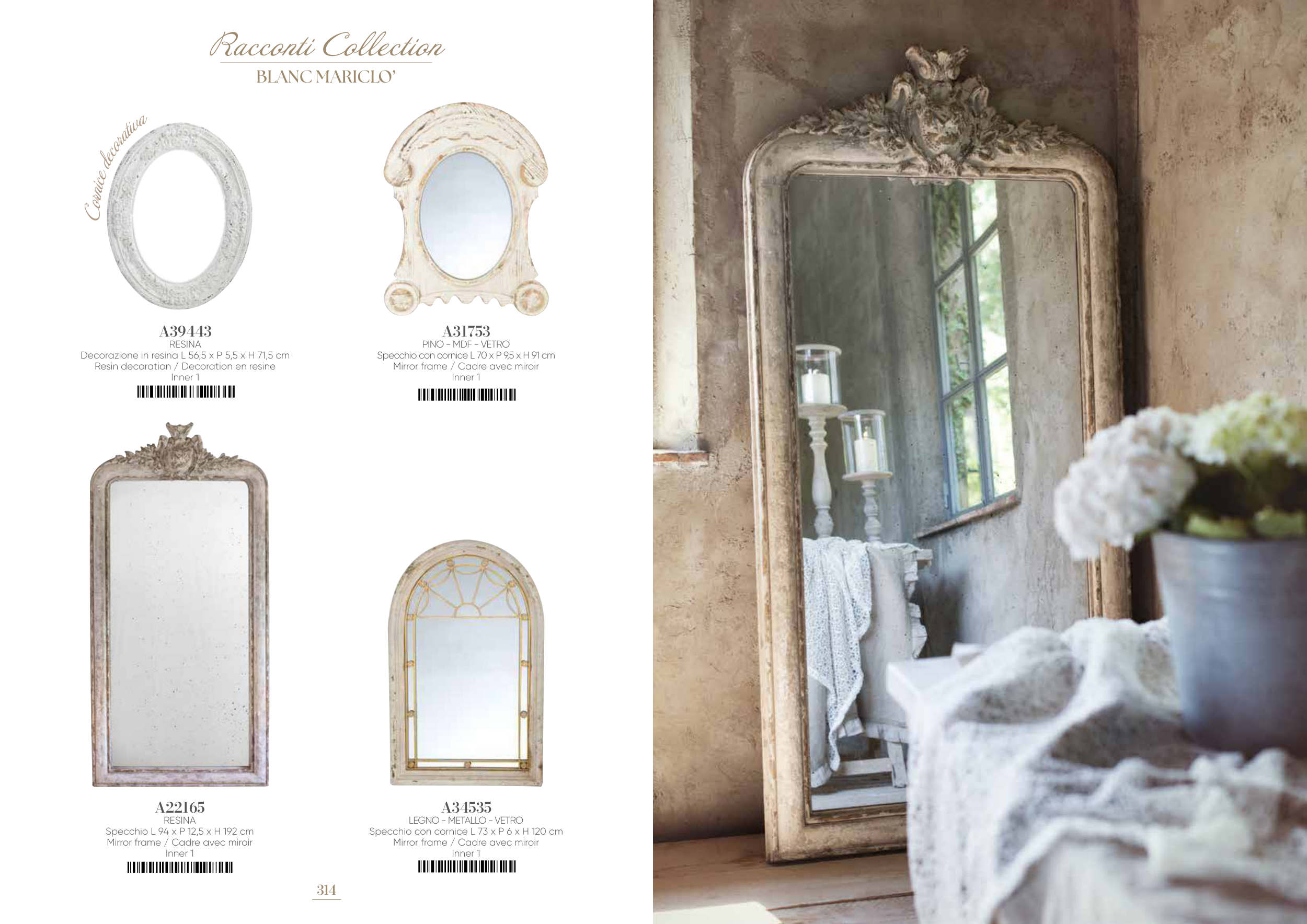Specchio con cornice L 73 x P 6 x H 120 cm