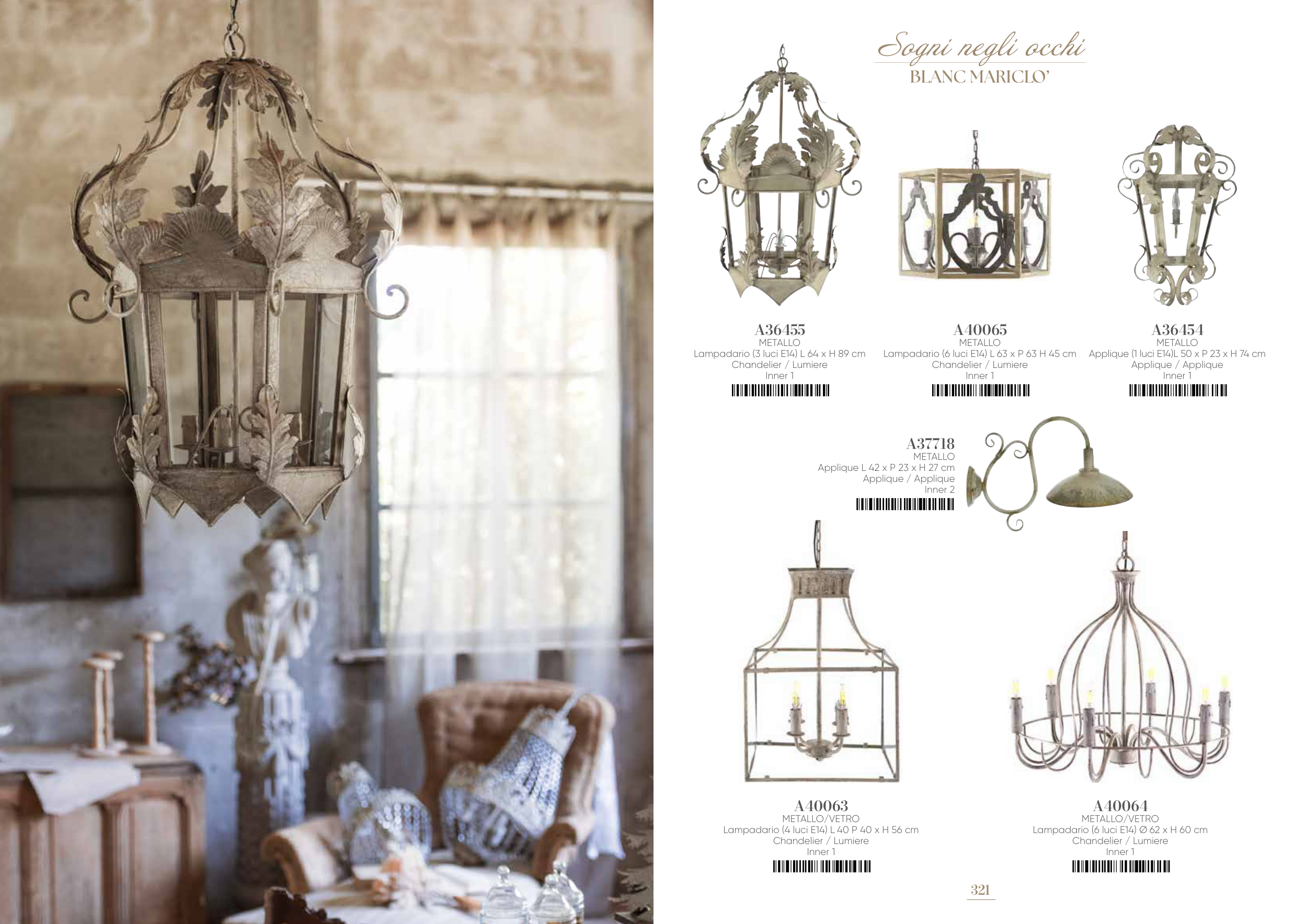 Applique (1 luci E14)L 50 x P 23 x H 74 cm
