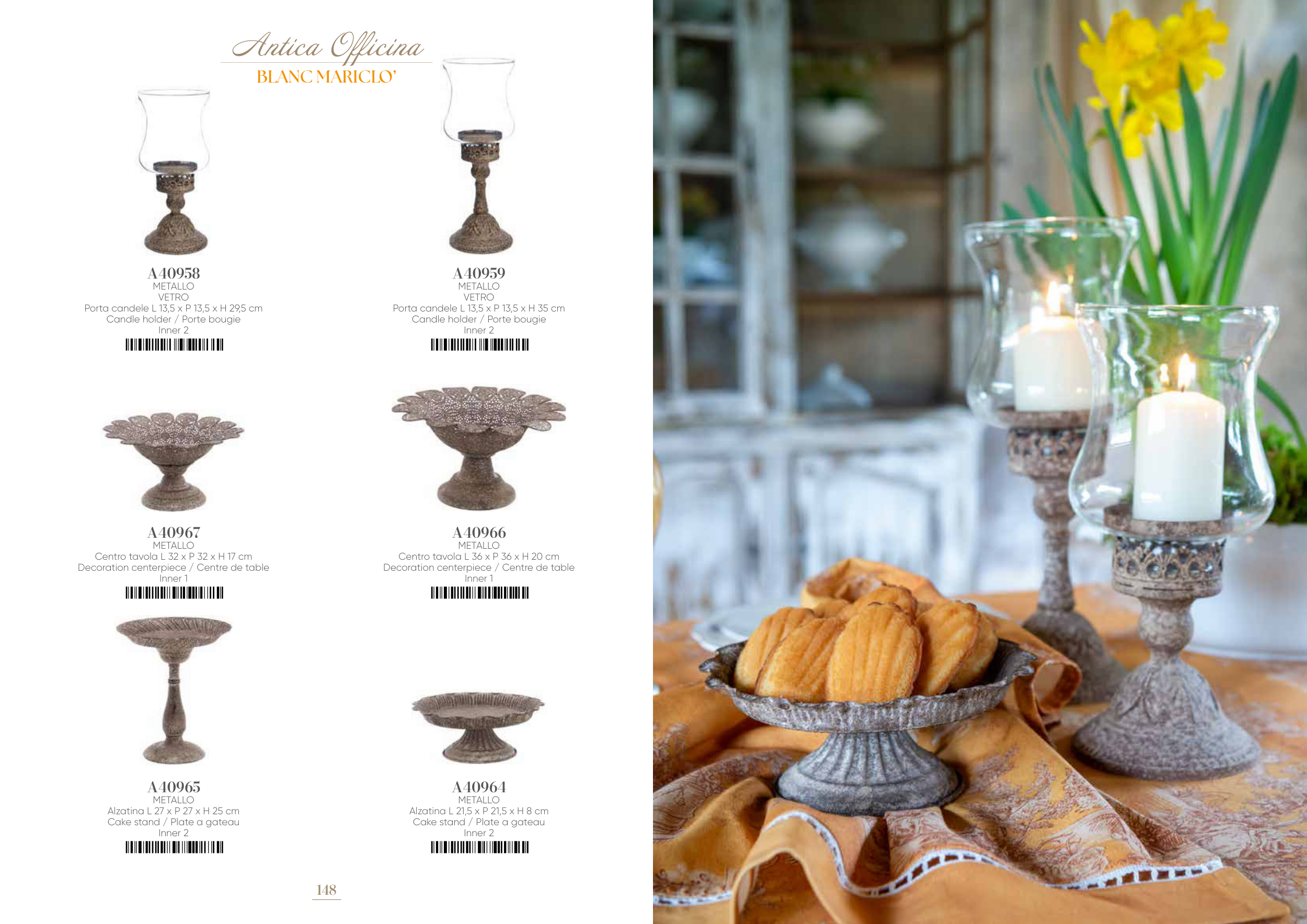 Porta candele L 13,5 x P 13,5 x H 35 cm