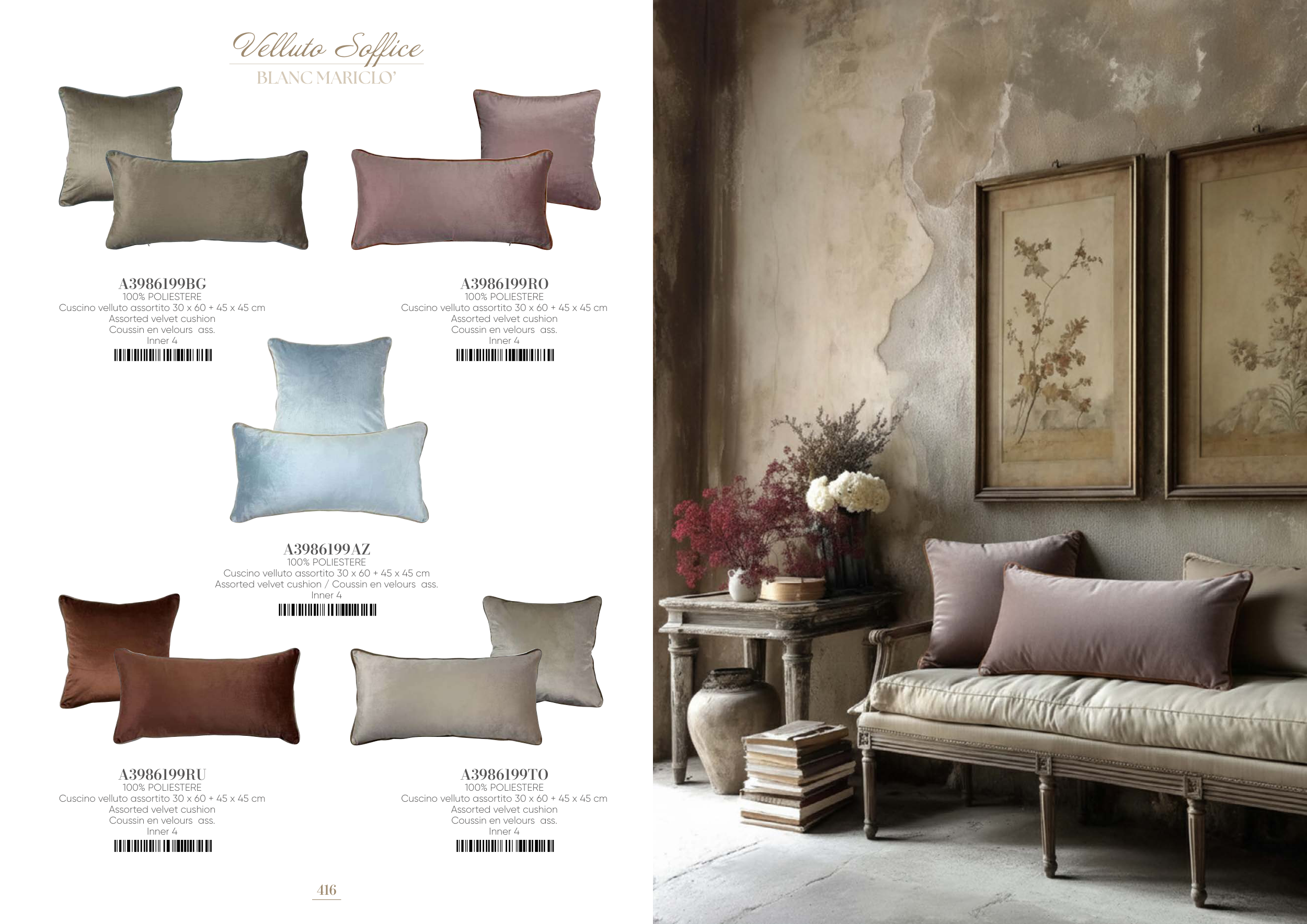 Cuscino velluto assortito 30 x 60 + 45 x 45 cm