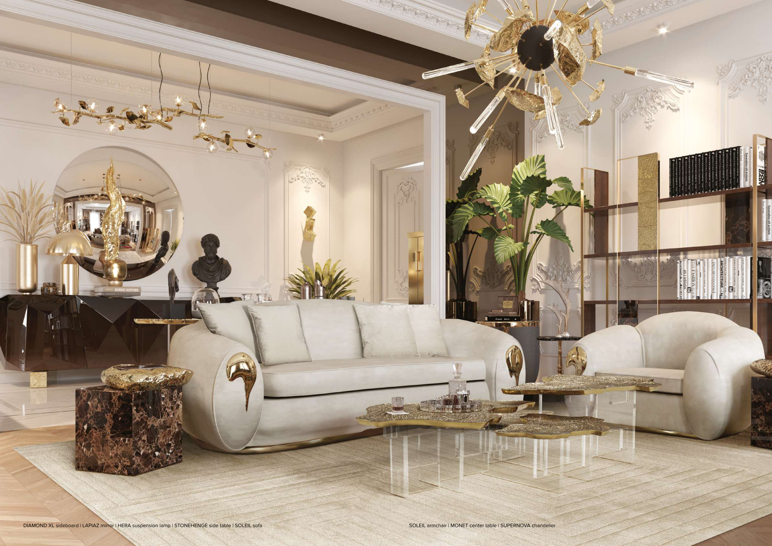 SOLEIL armchair | MONET center table | SUPERNOVA chandelier