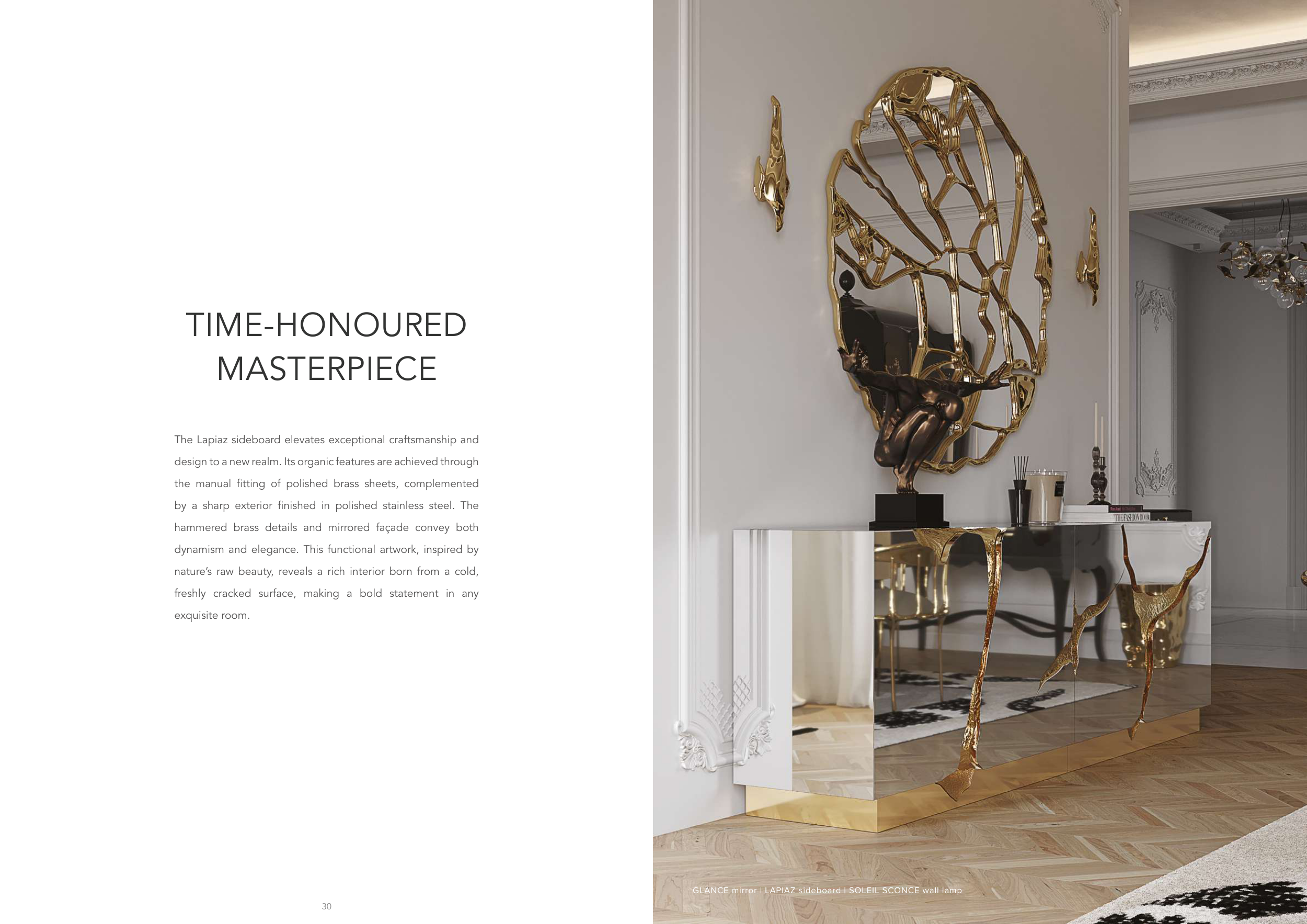 GLANCE mirror | LAPIAZ sideboard | SOLEIL SCONCE wall lamp