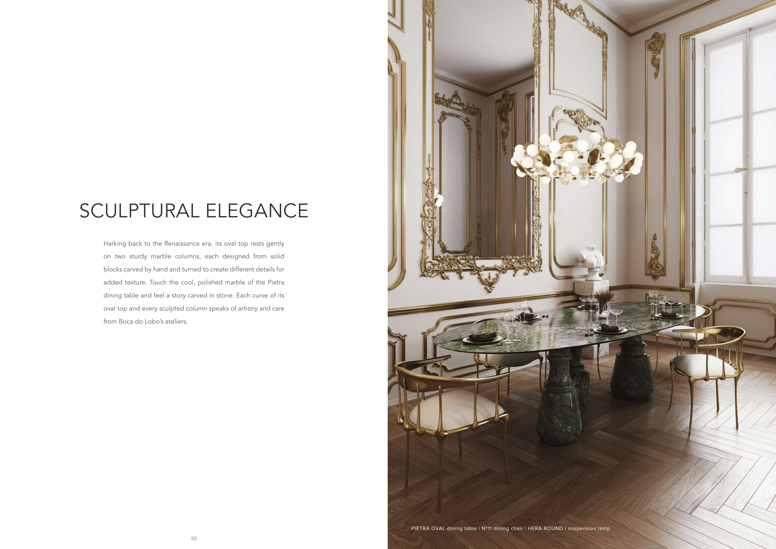 dining table and feel a story carved in stone. Each curve of its