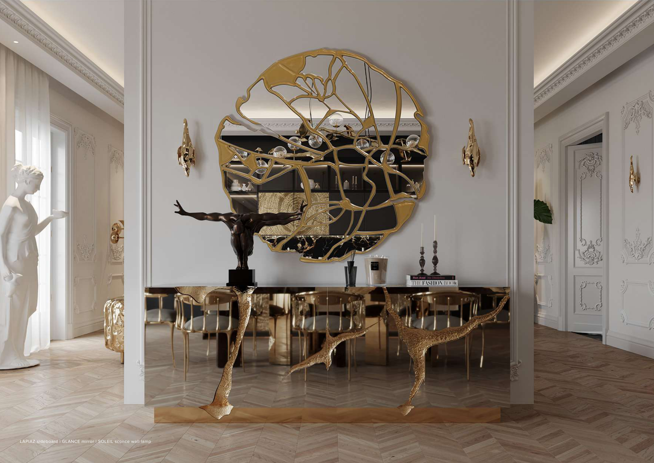 LAPIAZ sideboard | GLANCE mirror | SOLEIL sconce wall lamp
