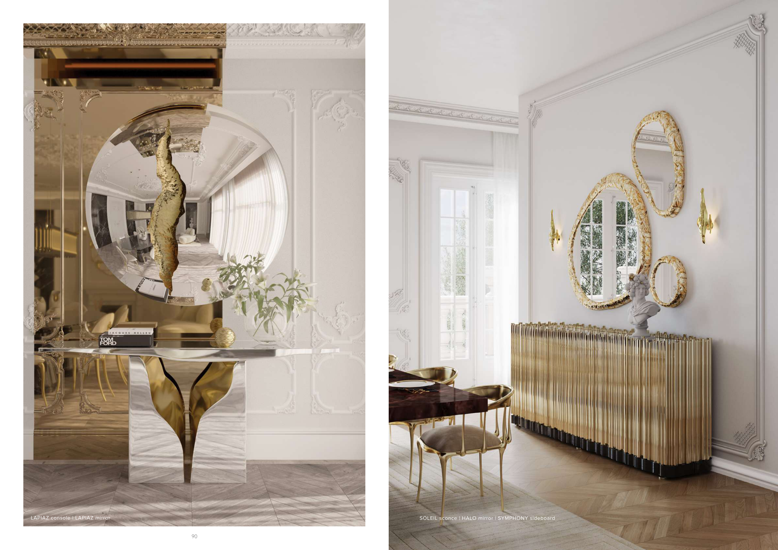 SOLEIL sconce | HALO mirror | SYMPHONY sideboard