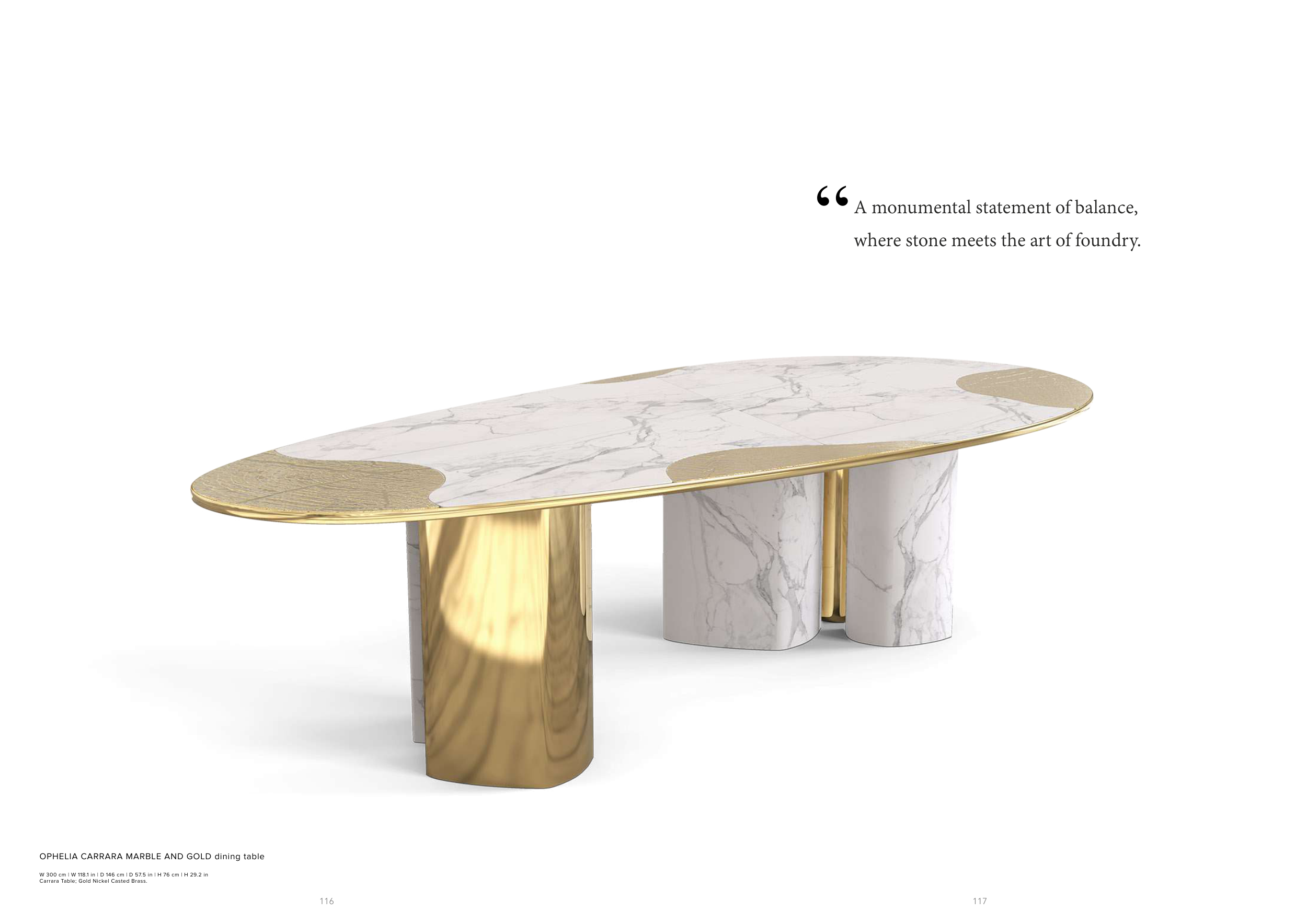 OPHELIA CARRARA MARBLE AND GOLD dining table