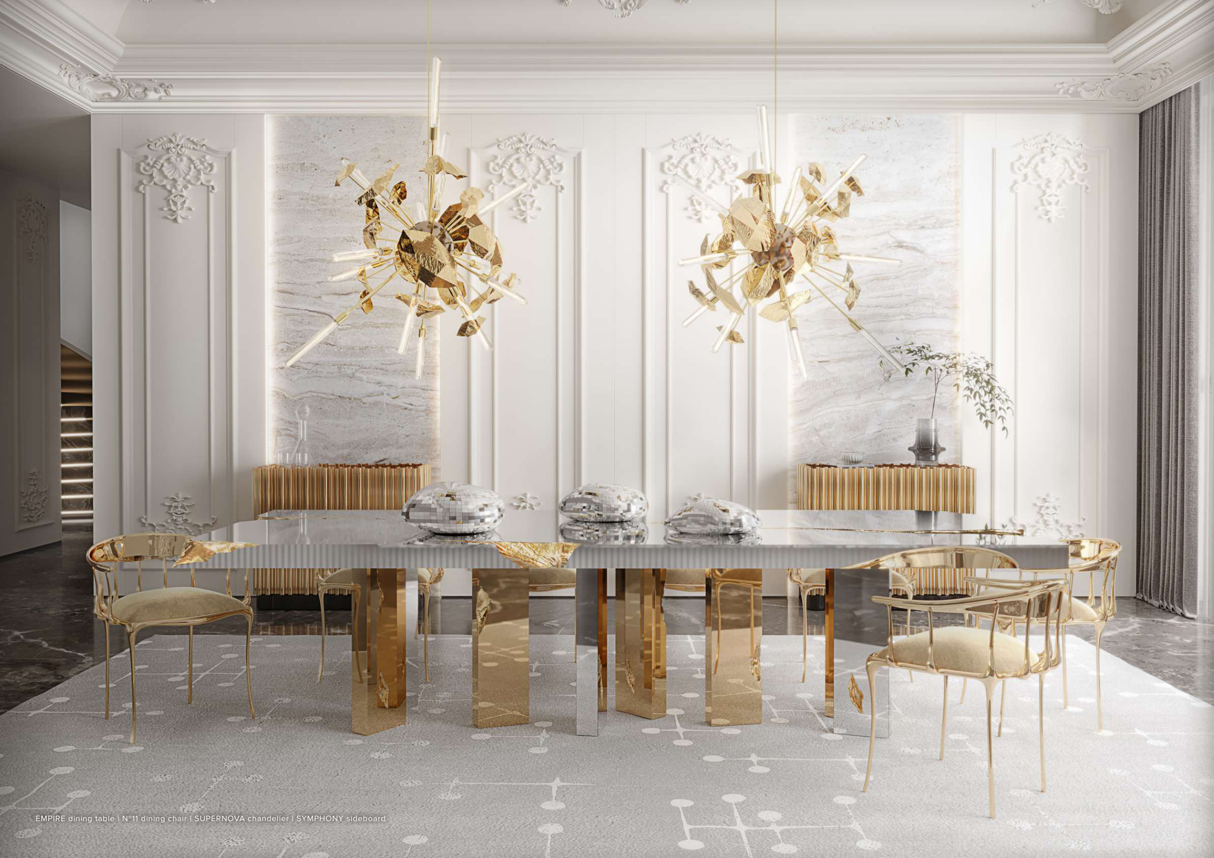 EMPIRE dining table | Nº11 dining chair | SUPERNOVA chandelier | SYMPHONY sideboard