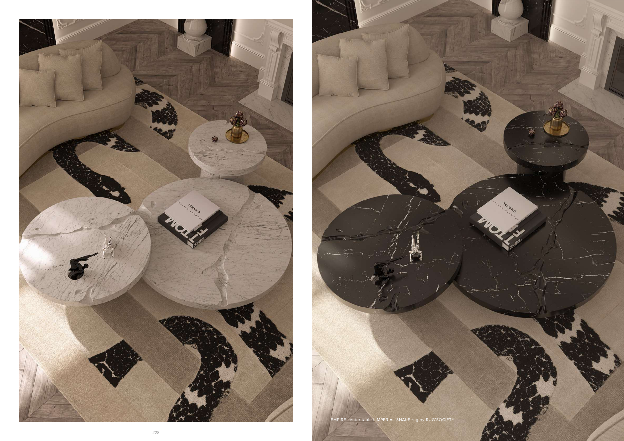 EMPIRE center table | IMPERIAL SNAKE rug by RUG’SOCIETY