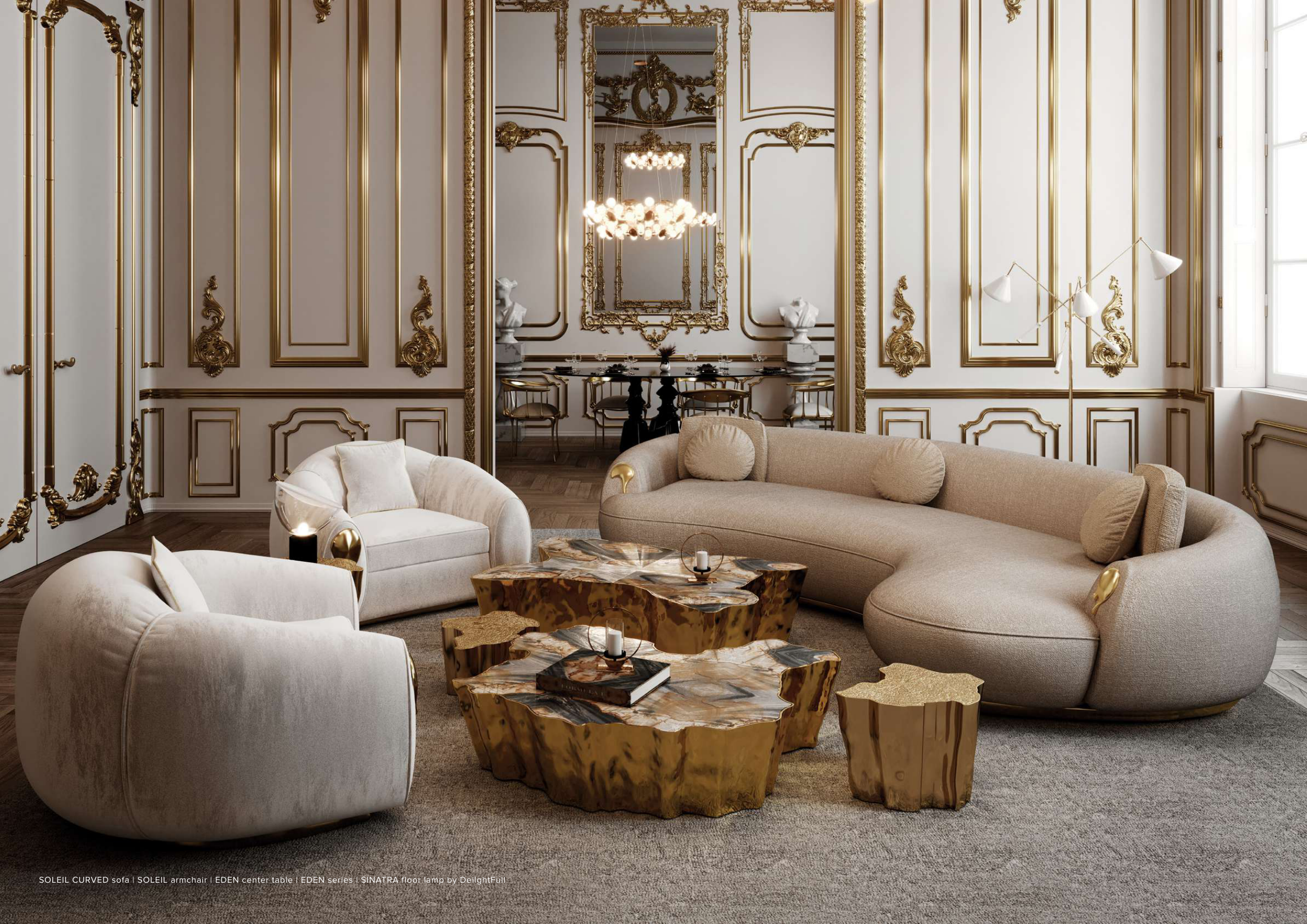 SOLEIL CURVED sofa | SOLEIL armchair | EDEN center table | EDEN series | SINATRA floor lamp by DeilghtFull