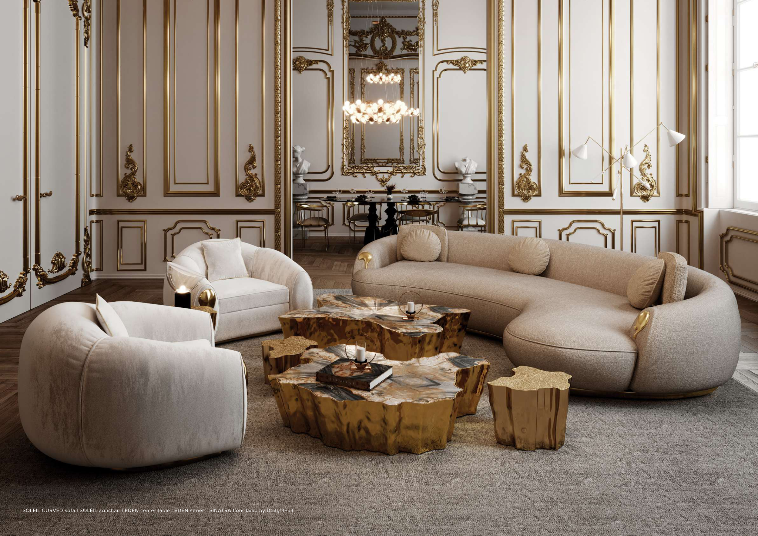 SOLEIL CURVED sofa | SOLEIL armchair | EDEN center table | EDEN series | SINATRA floor lamp by DeilghtFull