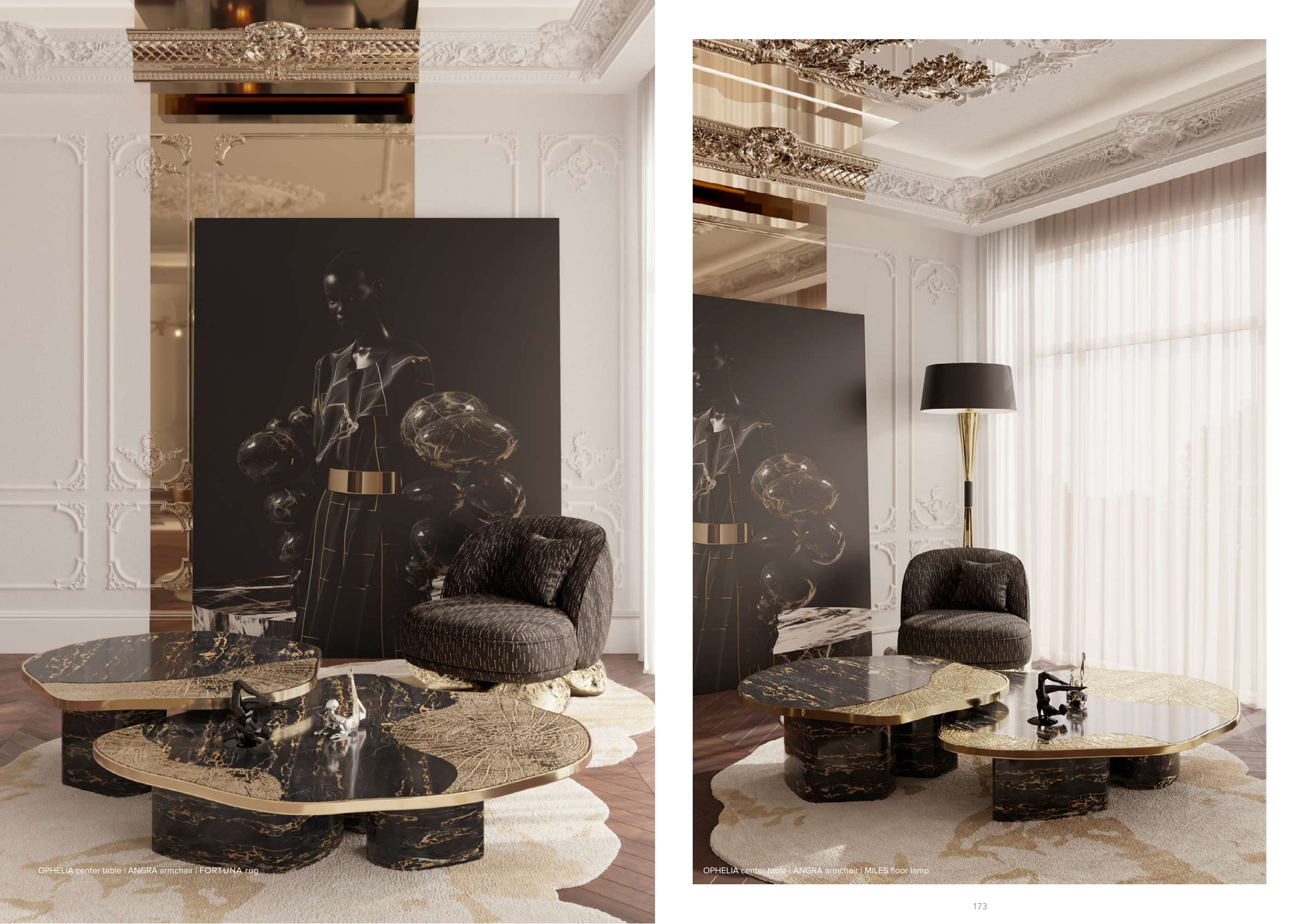 OPHELIA center table | ANGRA armchair | FORTUNA rug
