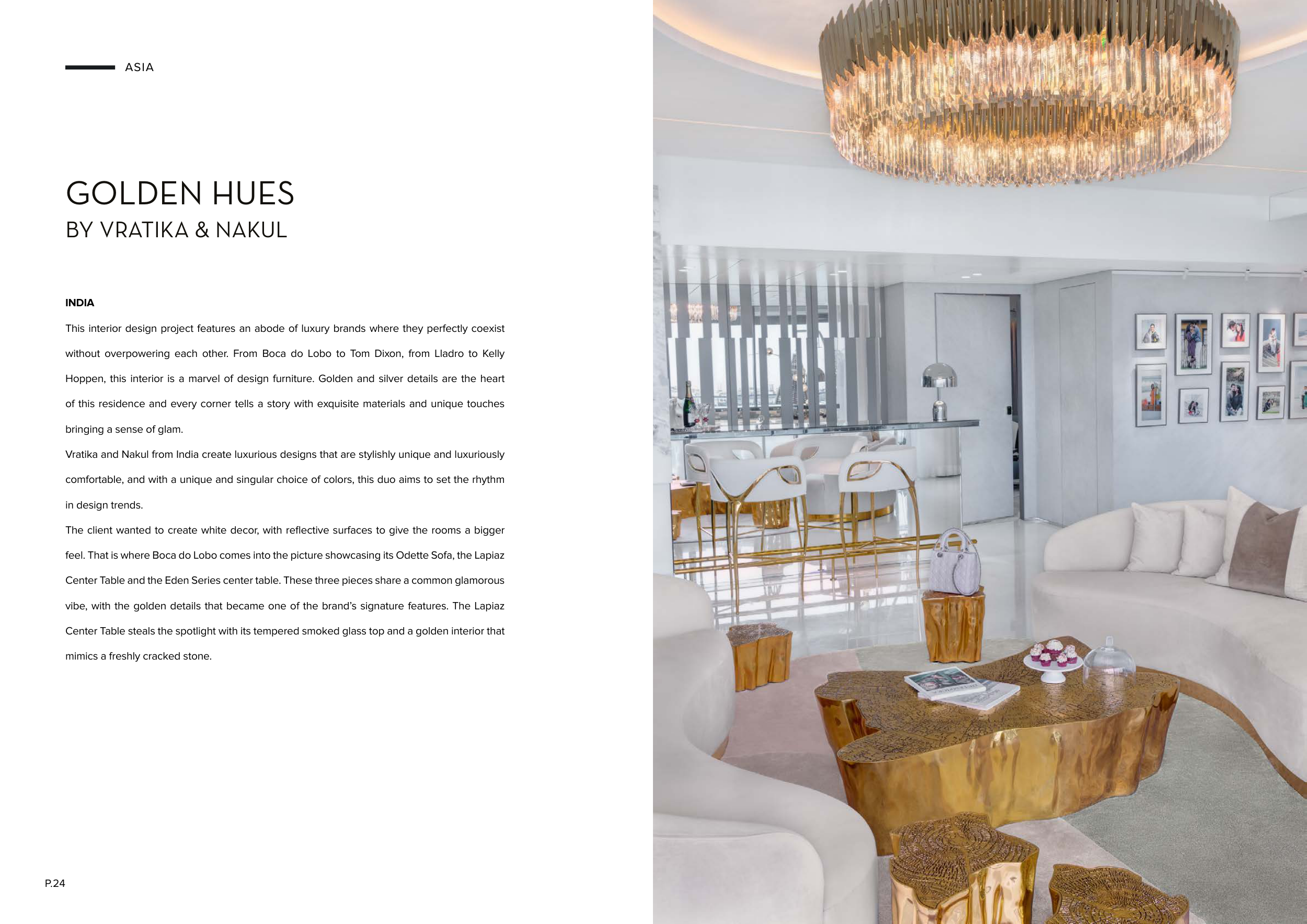 Hoppen, this interior is a marvel of design furniture. Golden and silver details are the heart
