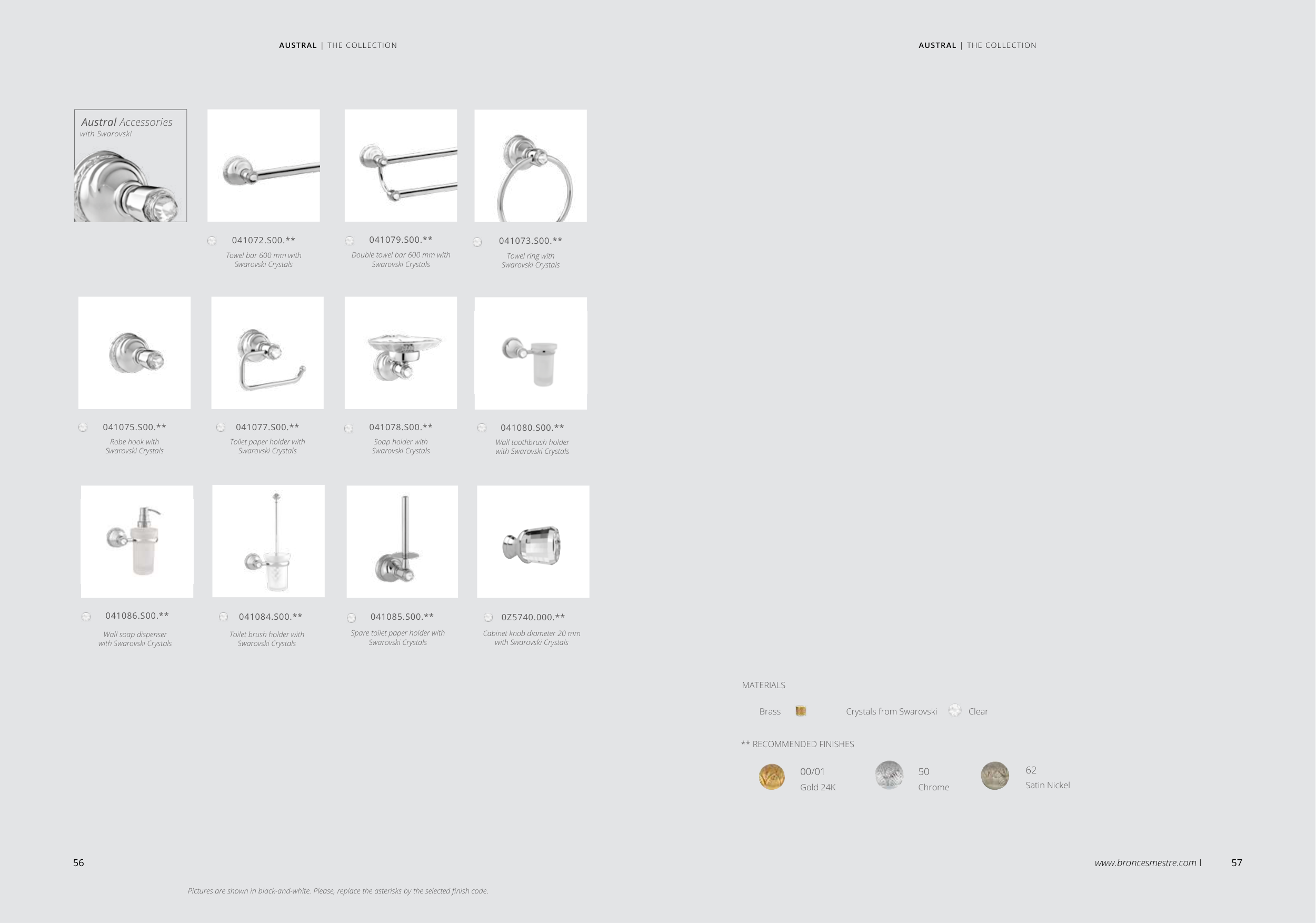 Pictures are shown in black-and-white. Please, replace the asterisks by the selected finish code.