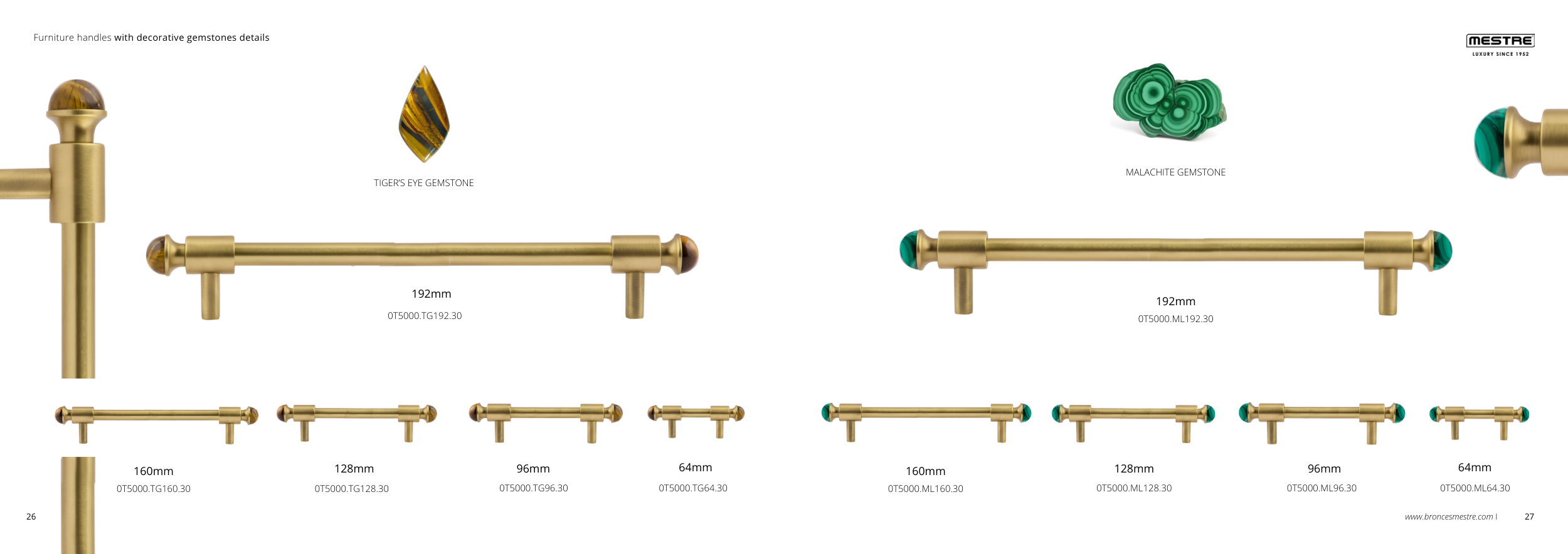 Furniture handles with decorative gemstones details