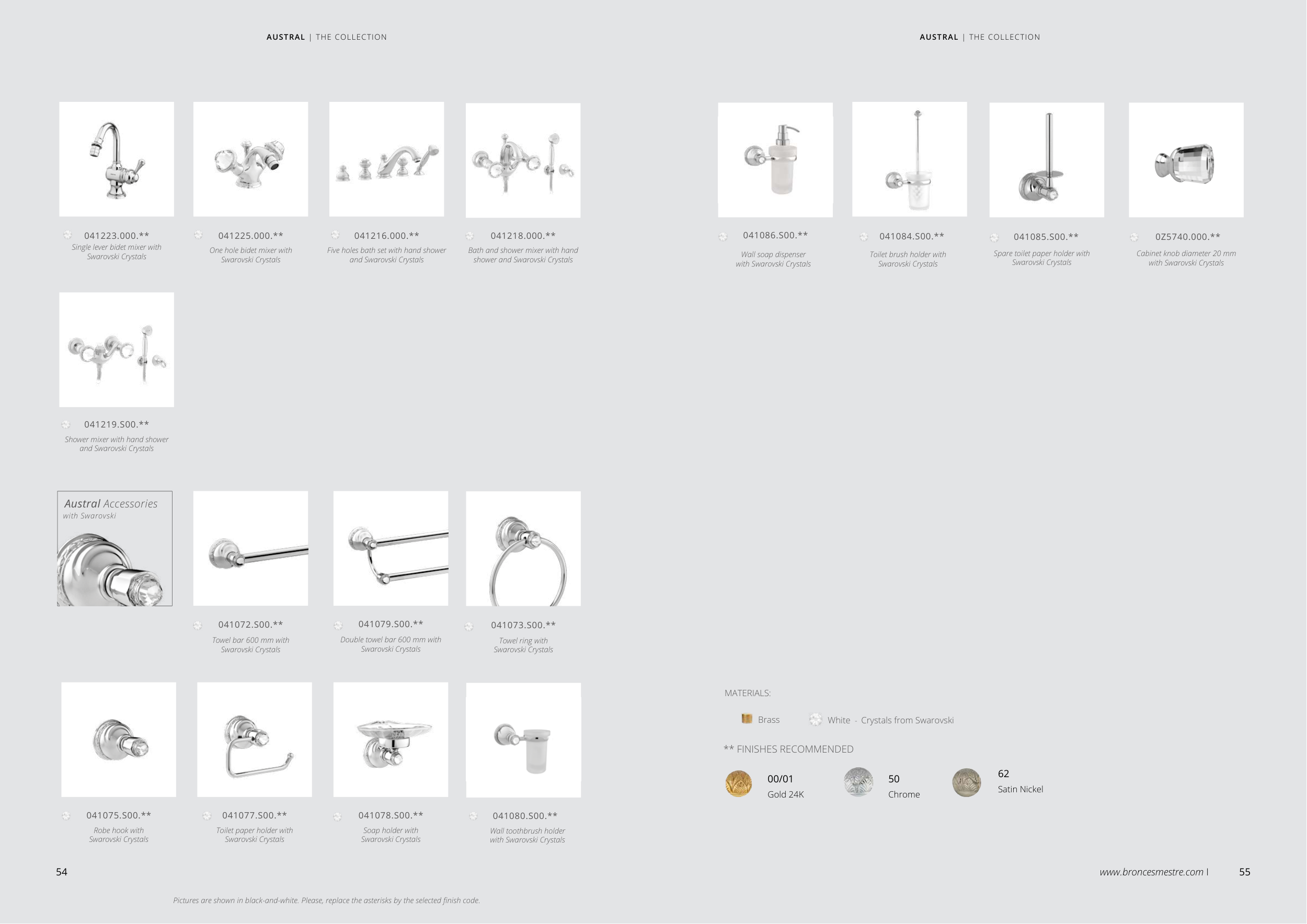 Pictures are shown in black-and-white. Please, replace the asterisks by the selected finish code.