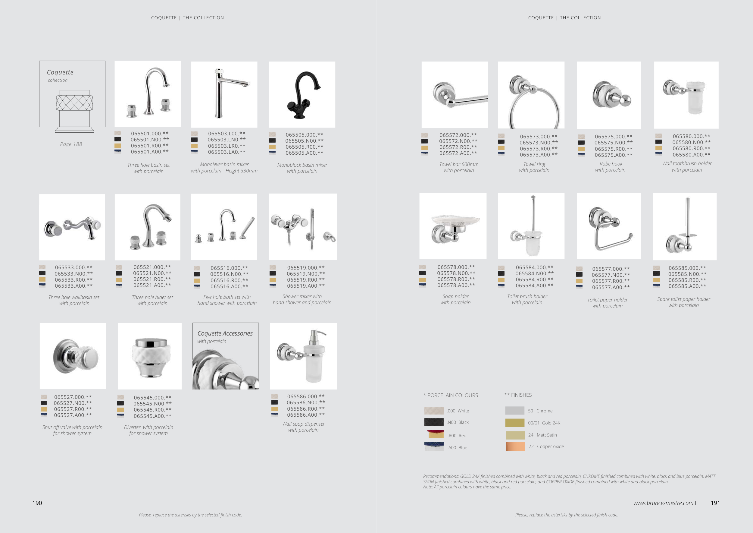 Recommendations: GOLD 24K finished combined with white, black and red porcelain, CHROME finished combined with white, black and blue porcelain, MATT