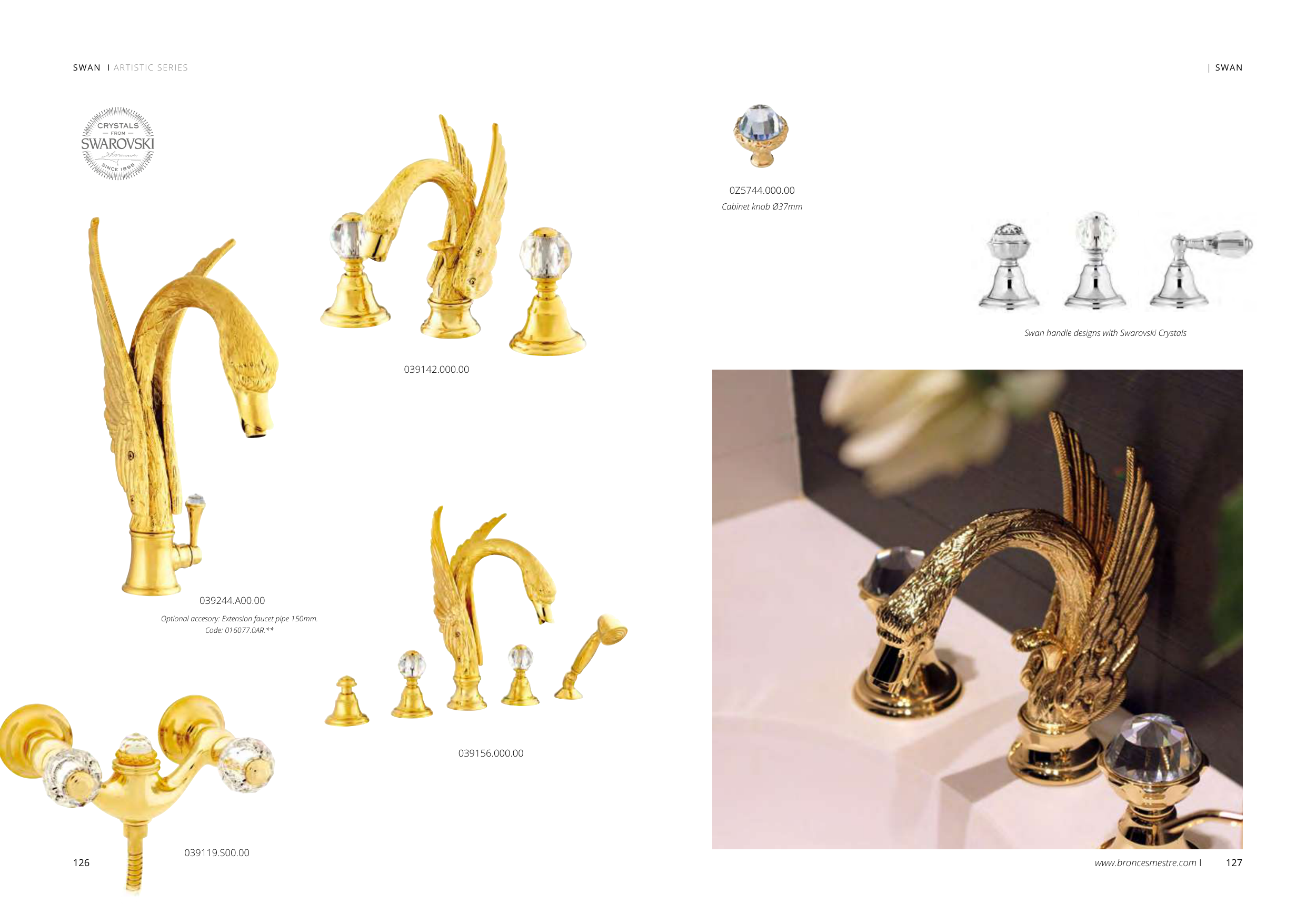Swan handle designs with Swarovski Crystals