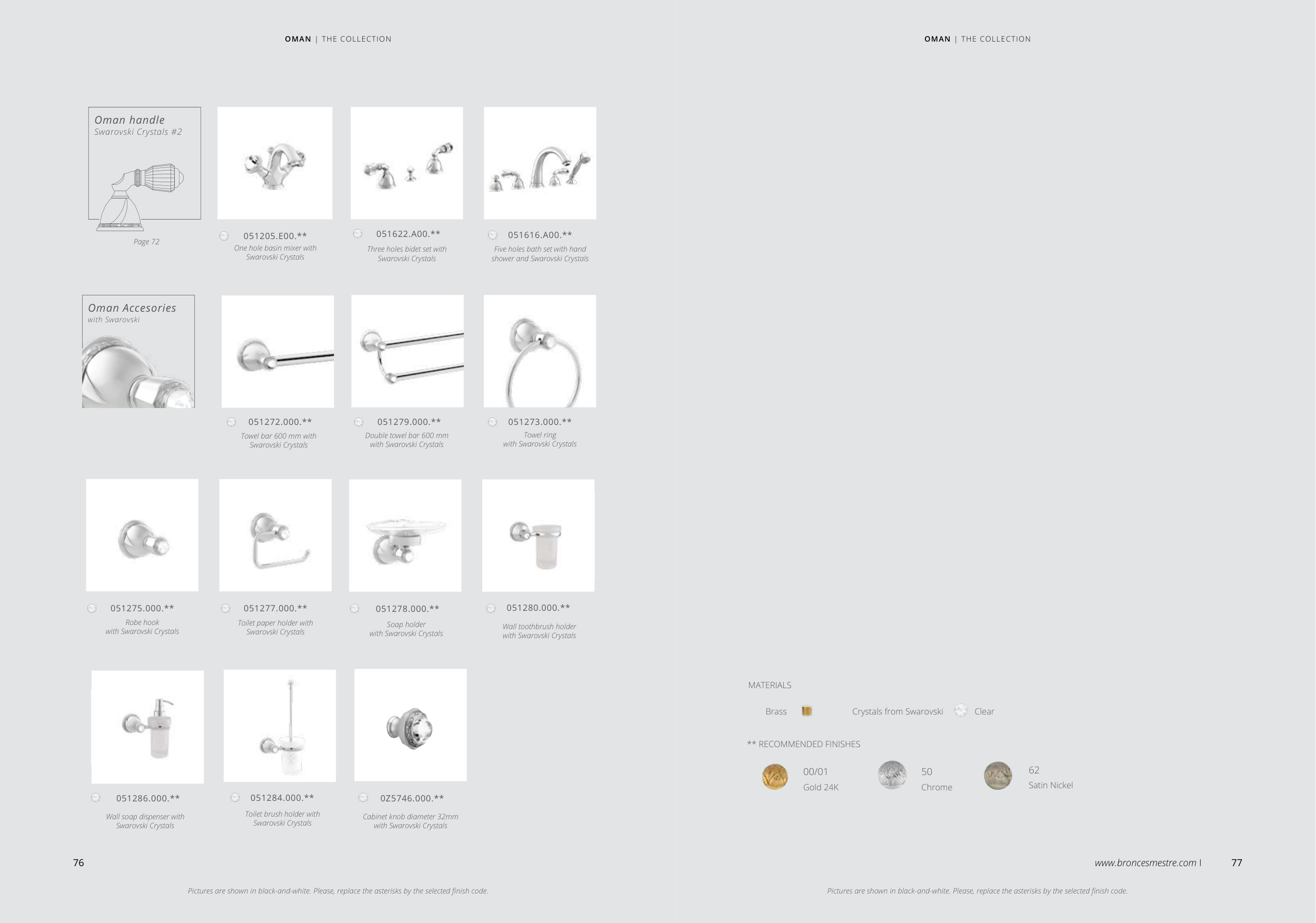 Pictures are shown in black-and-white. Please, replace the asterisks by the selected finish code.