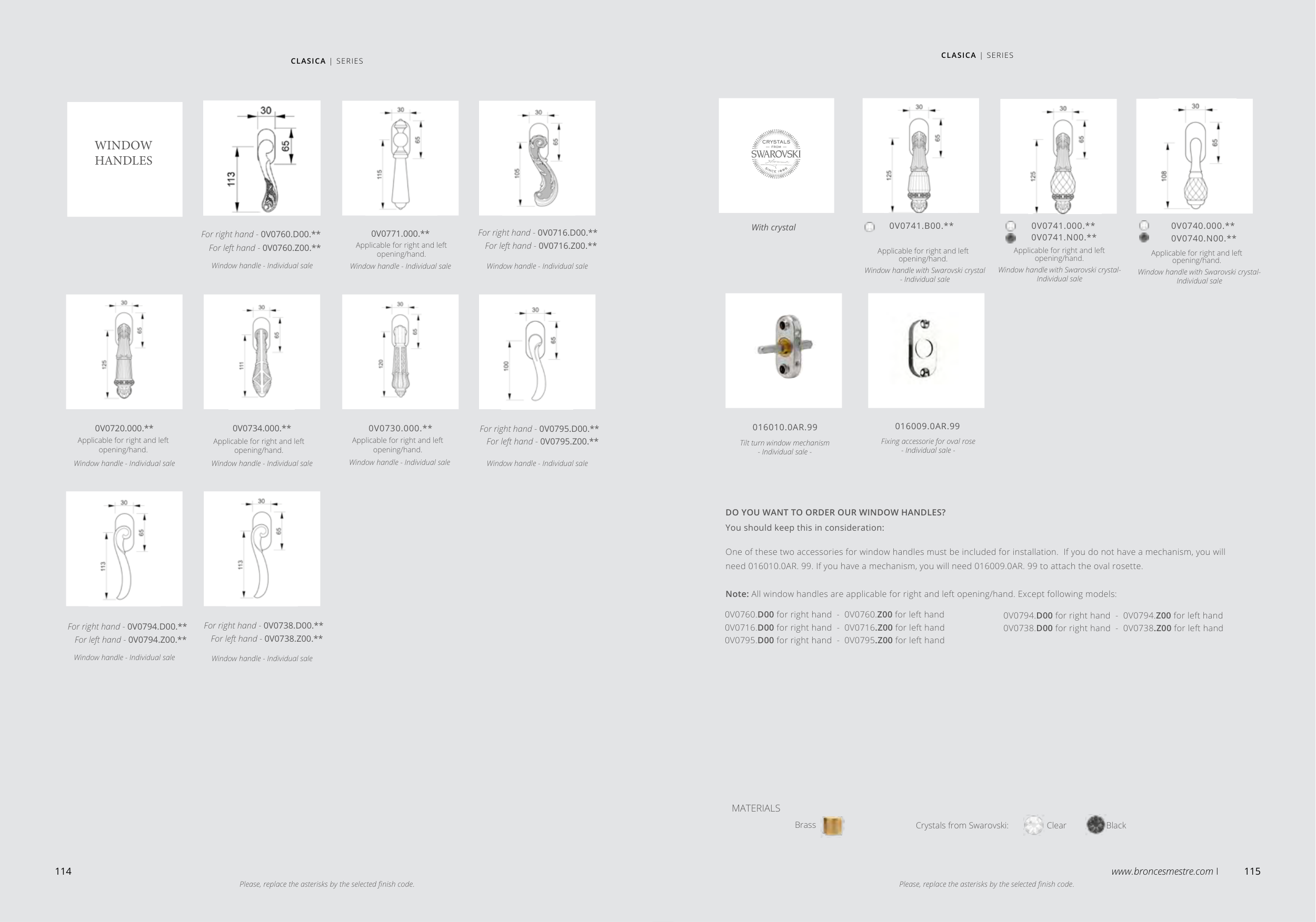 Note: All window handles are applicable for right and left opening/hand. Except following models: