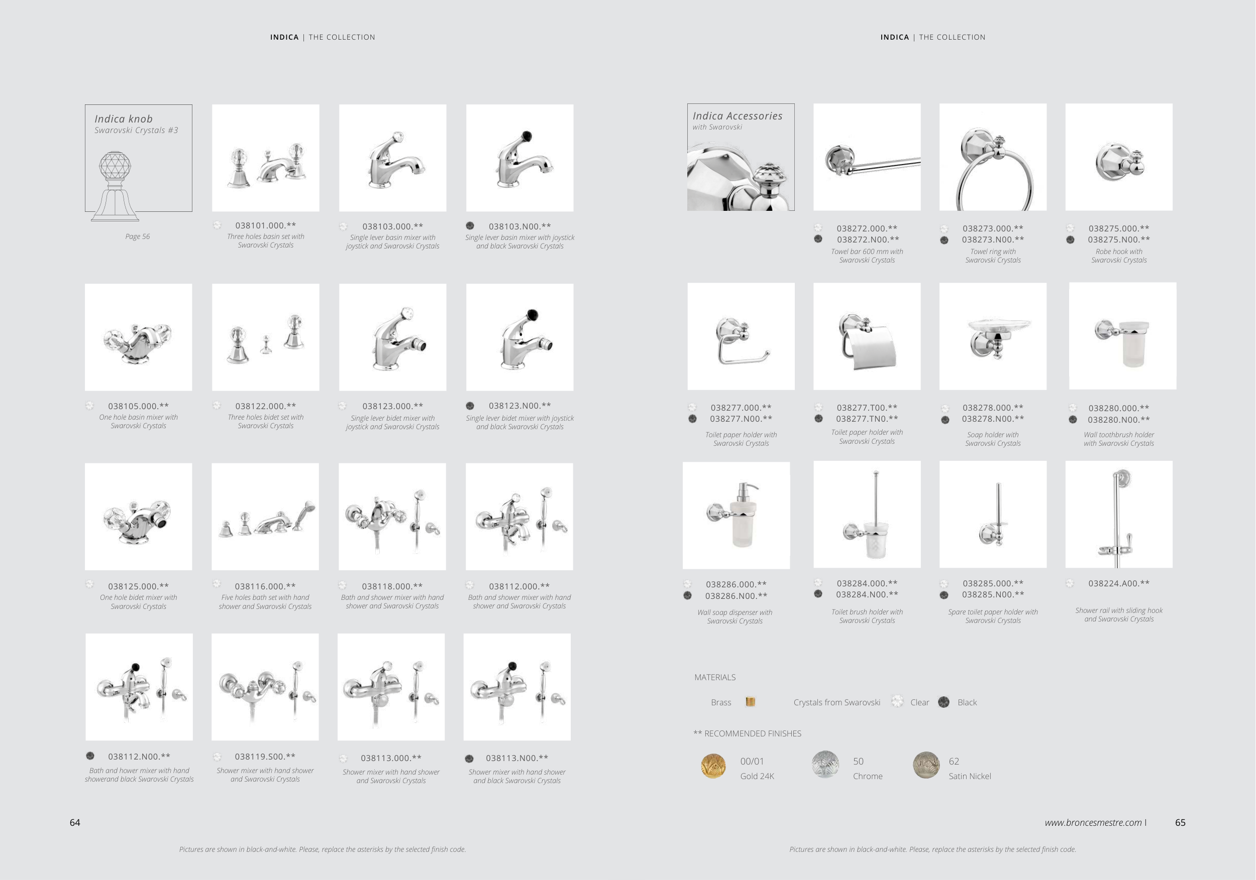 Pictures are shown in black-and-white. Please, replace the asterisks by the selected finish code.