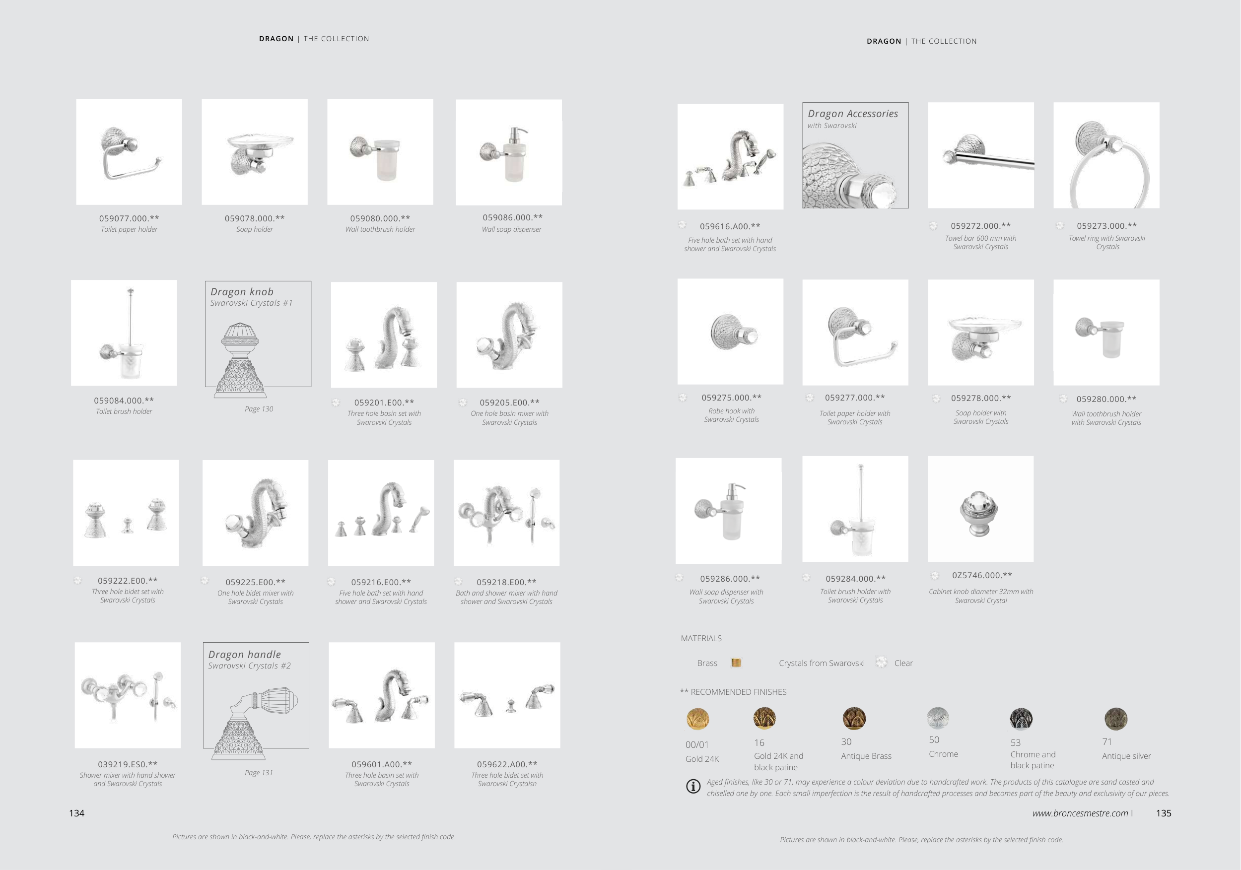 Aged finishes, like 30 or 71, may experience a colour deviation due to handcrafted work. The products of this catalogue are sand casted and
