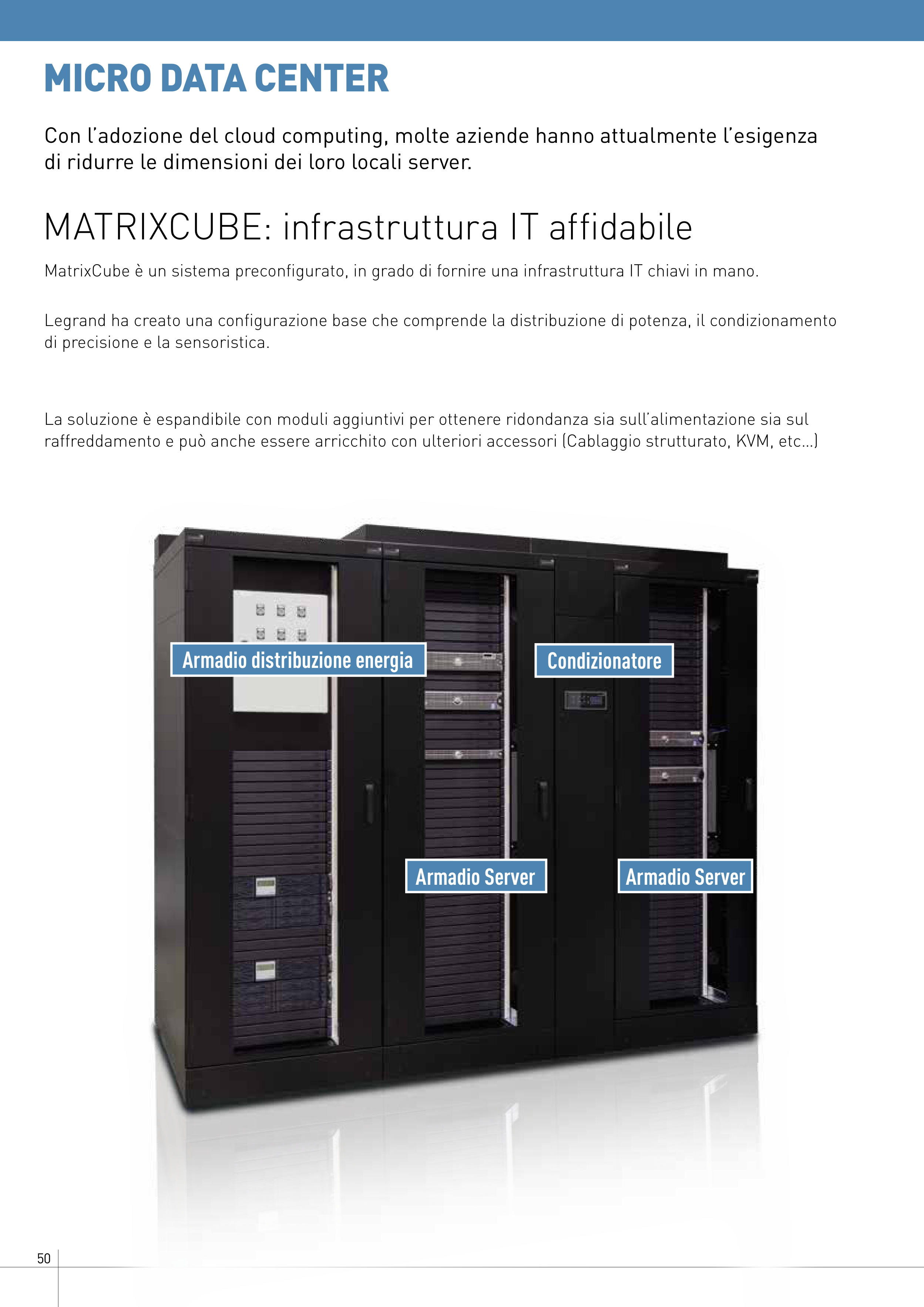 raffreddamento e può anche essere arricchito con ulteriori accessori (Cablaggio strutturato, KVM, etc…)