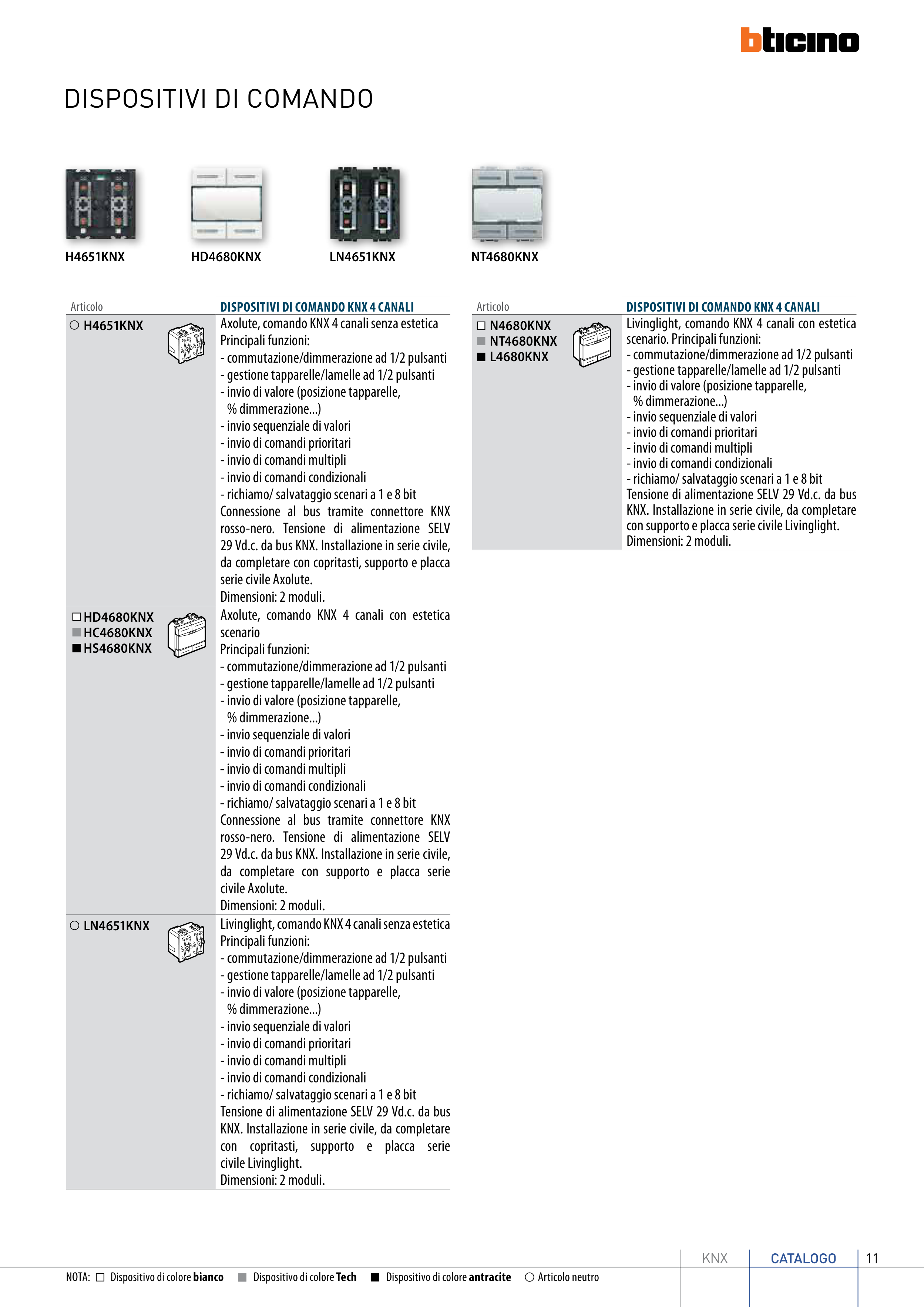 DISPOSITIVI DI COMANDO KNX 4 CANALI
