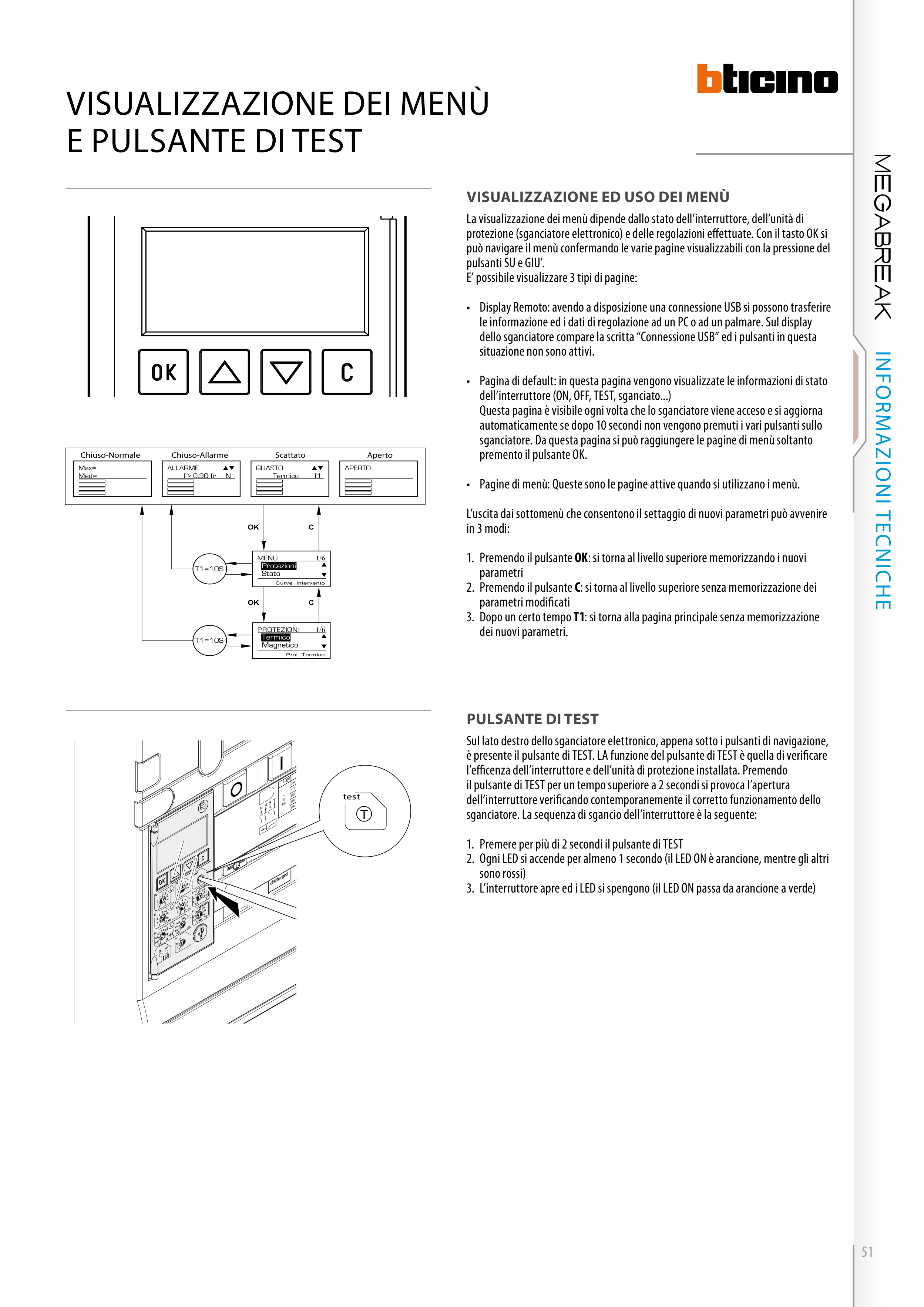 protezione (sganciatore elettronico) e delle regolazioni effettuate. Con il tasto OK si