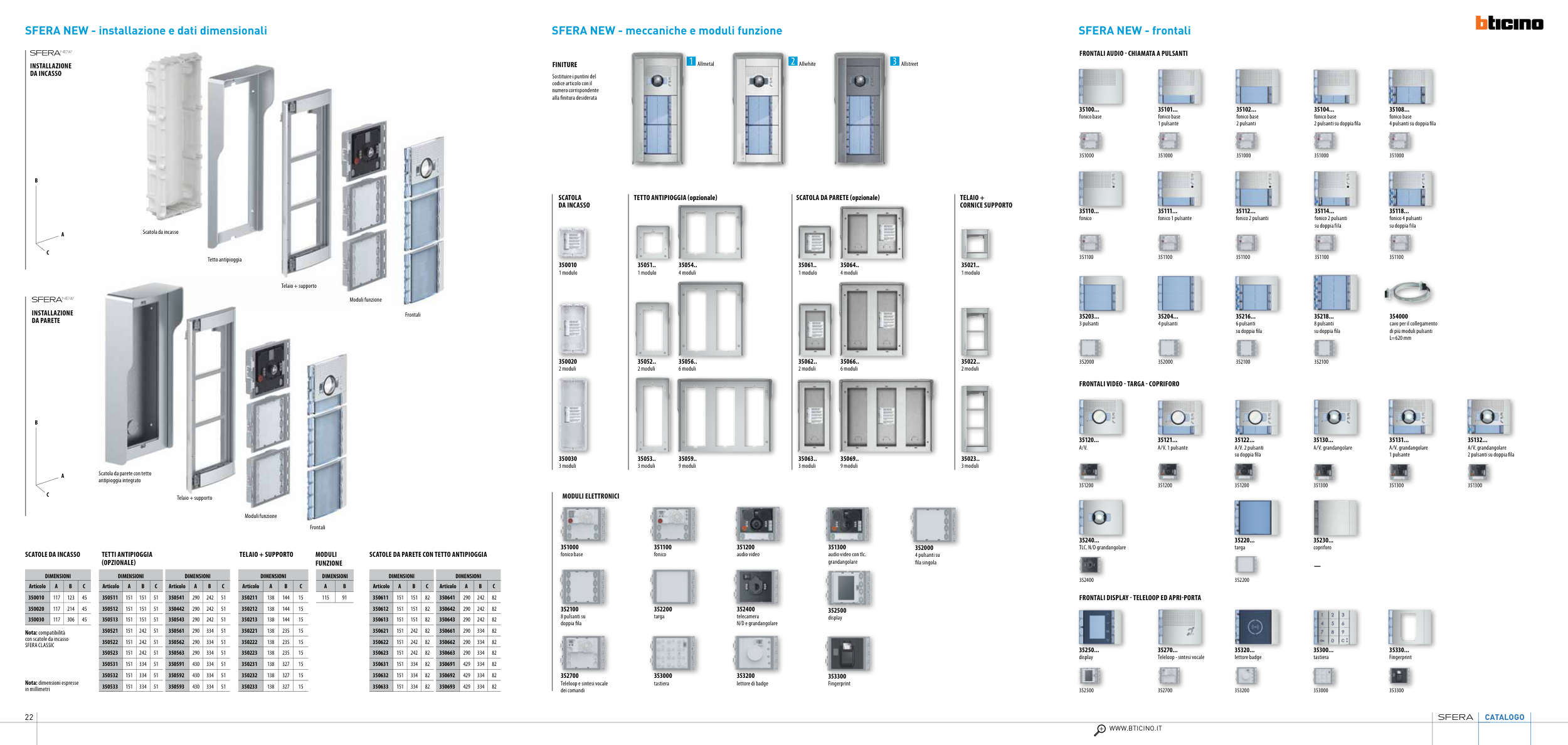 SFERA NEW - installazione e dati dimensionali